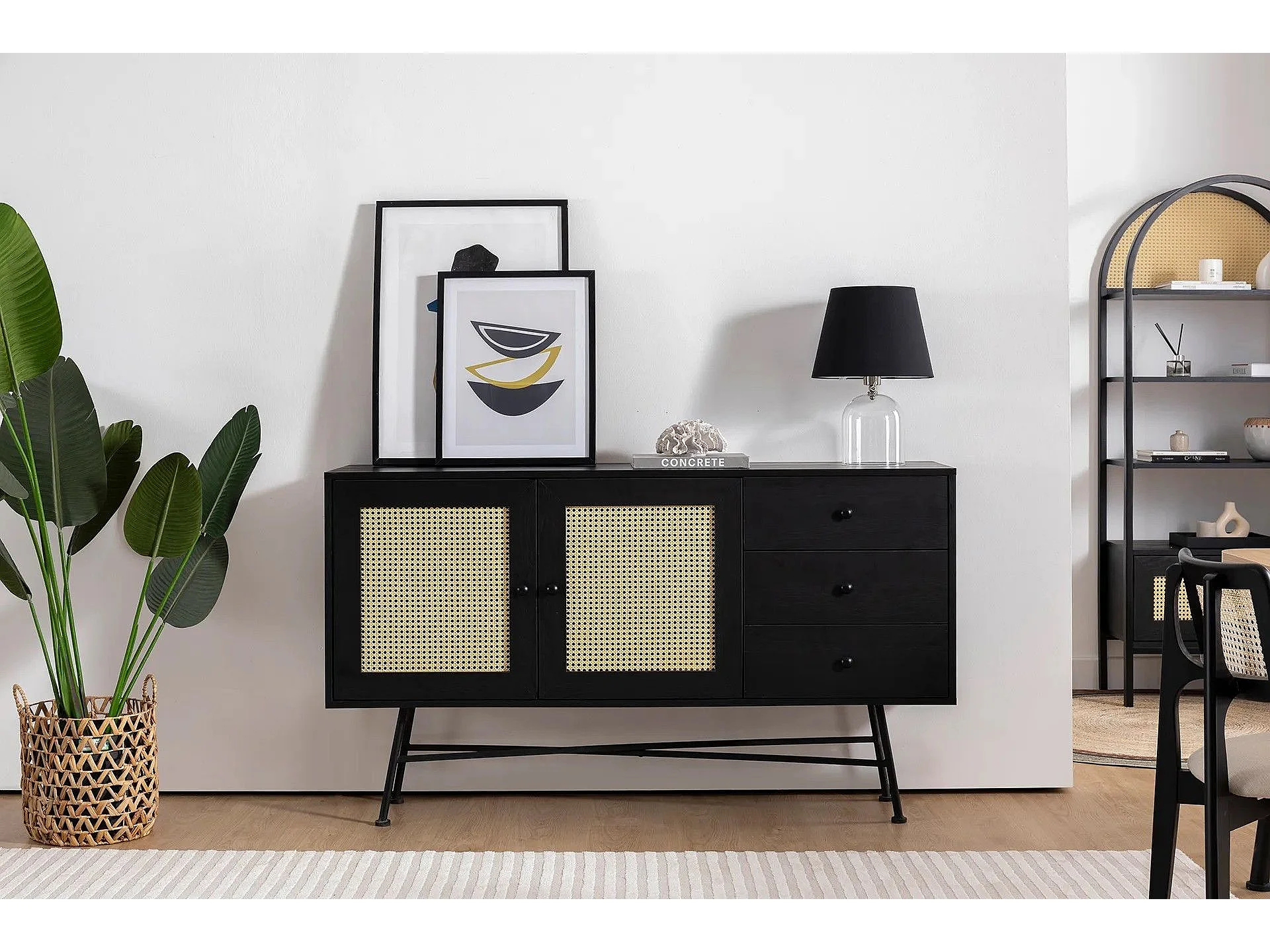 Móvel alto SENJA aspeto vime 90x40x112 cm pinho maciço preto