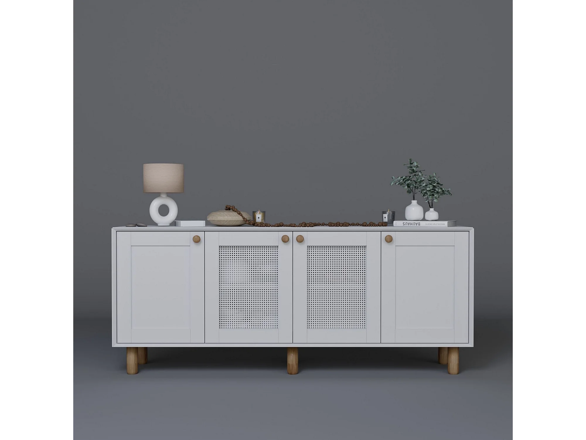 Aparador de madeira – 150 cm largura, 82 cm altura, 44 cm profundidade – Branco – Aglomerado revestido de melamina
