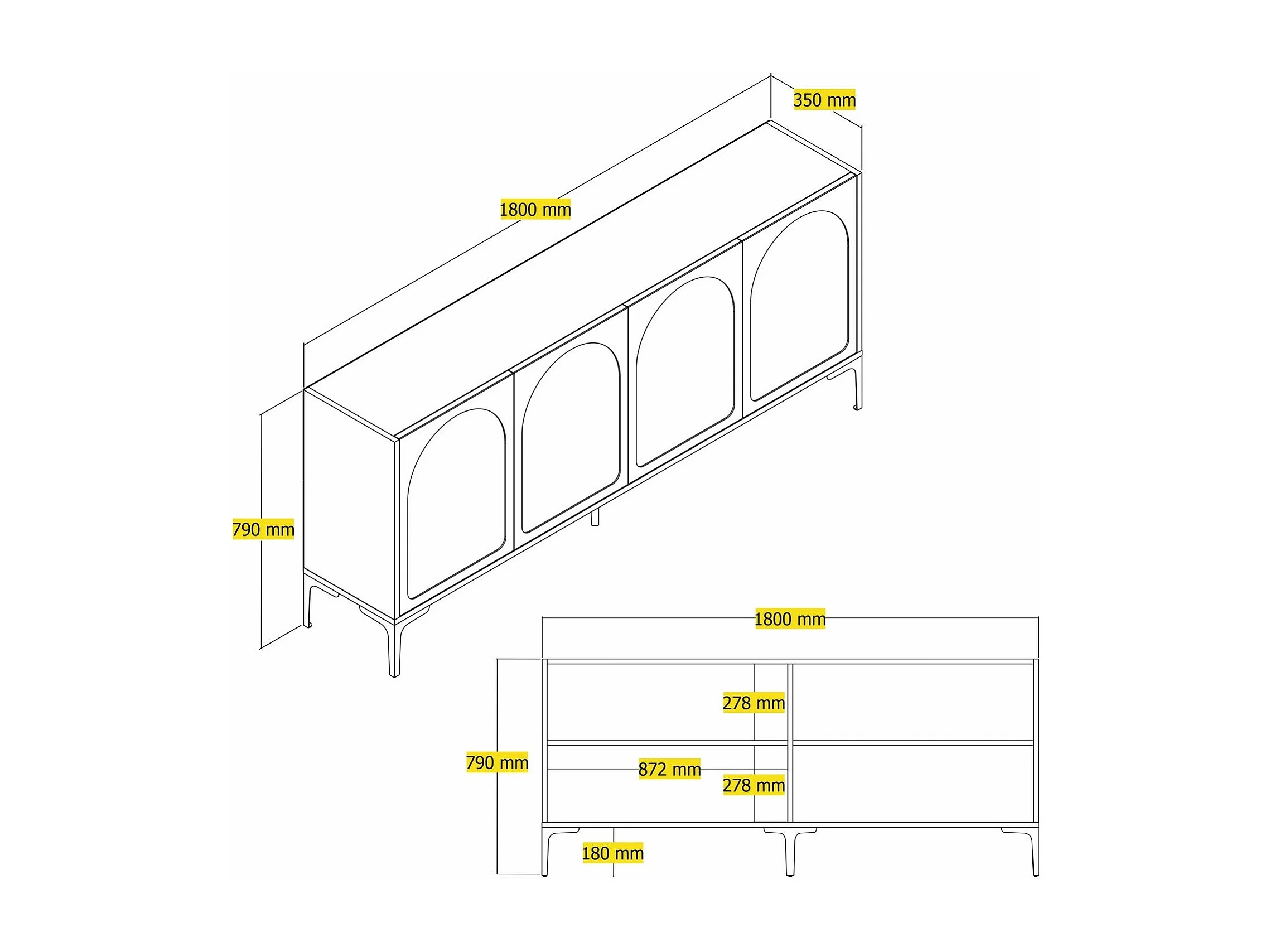 Aparador – 180 x 79 x 35 cm – Atlas e Preto – Painel de Partículas
