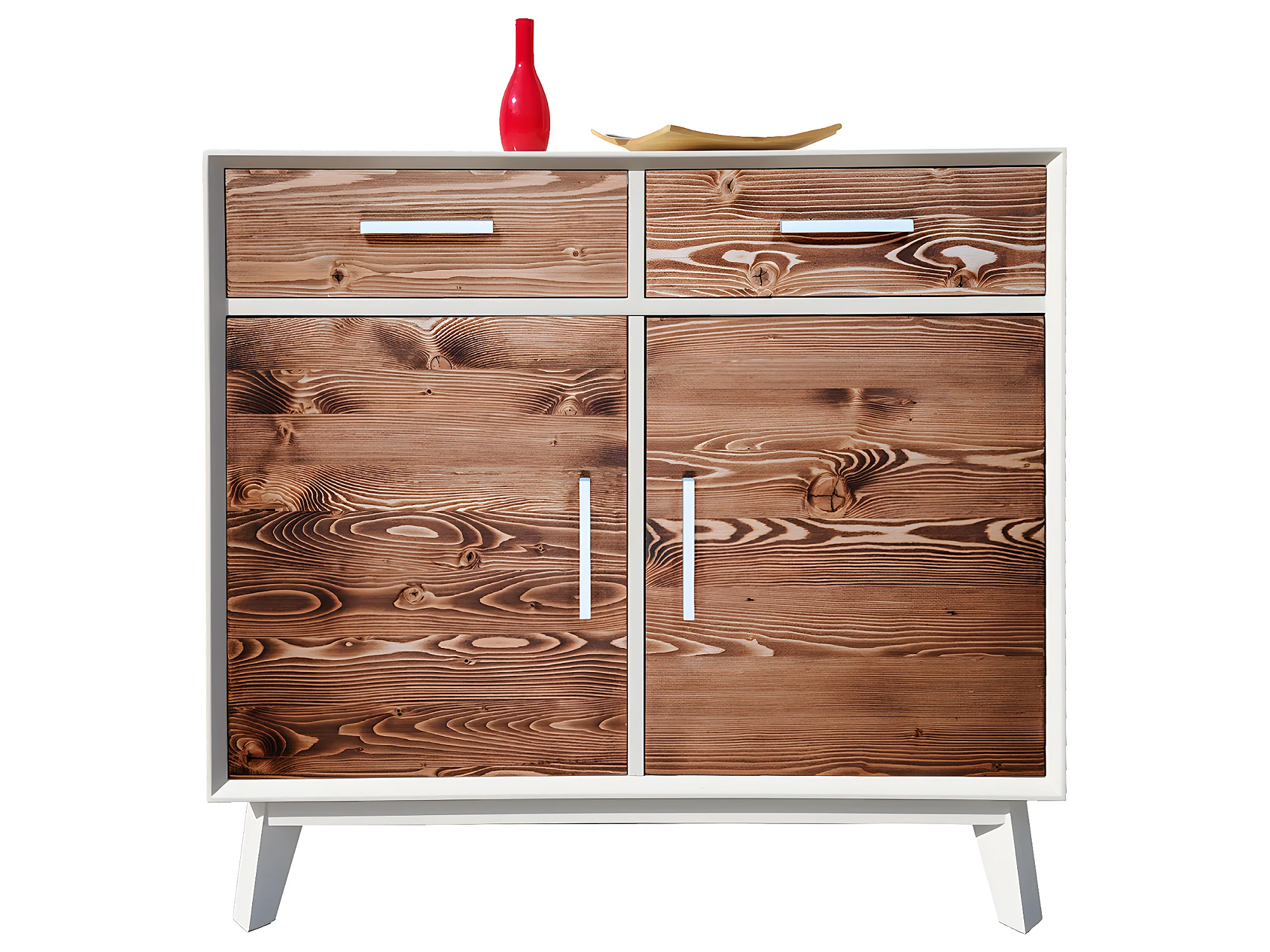 Aparador 2 portas 2 gavetas Nostalgie branco e madeira 85cm