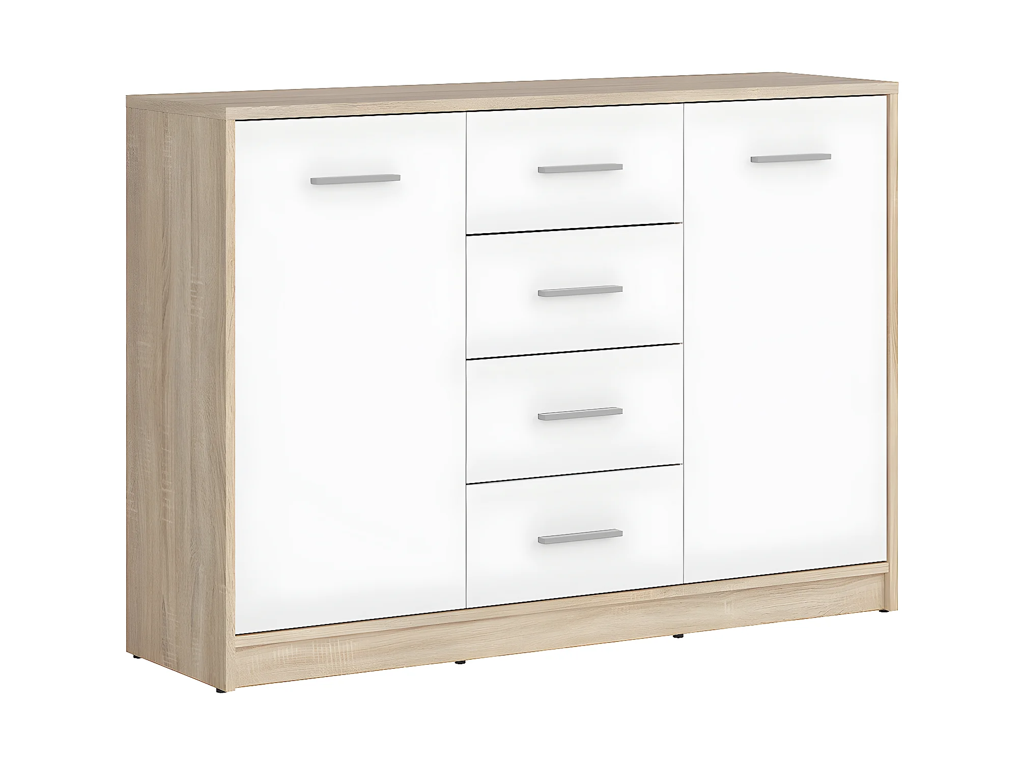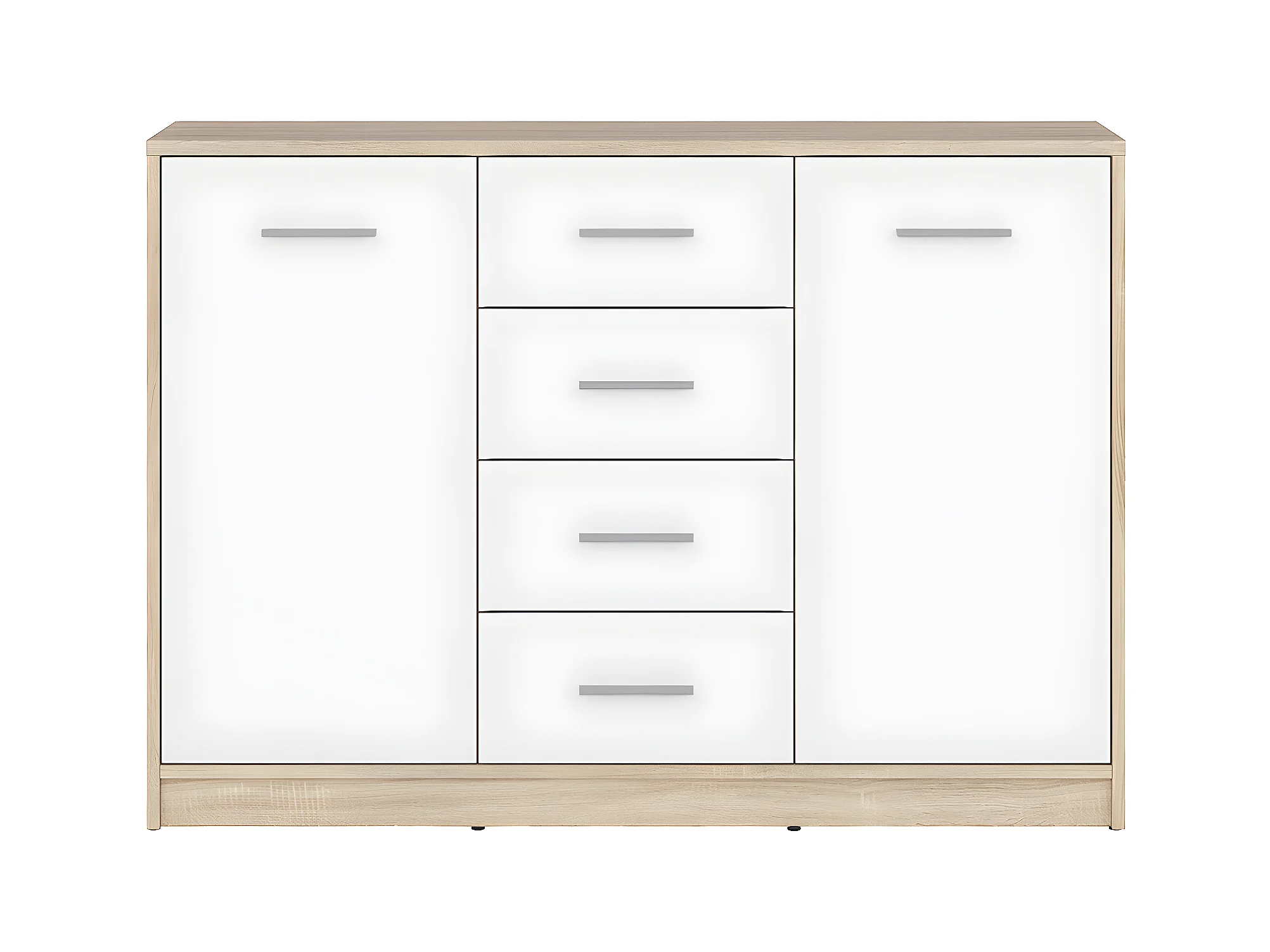 Aparador 2 portas 4 gavetas Ewen madeira e branco 84cm