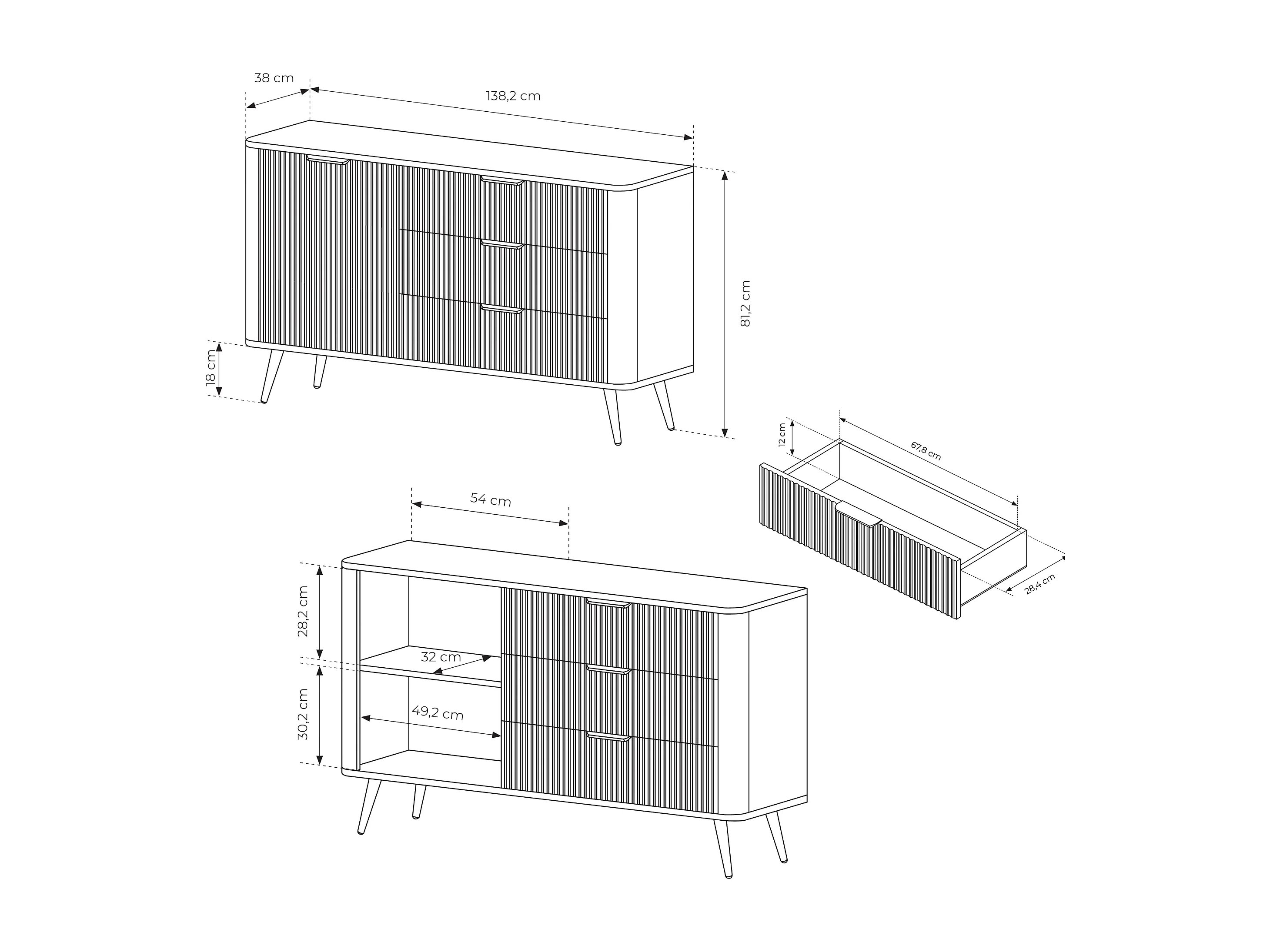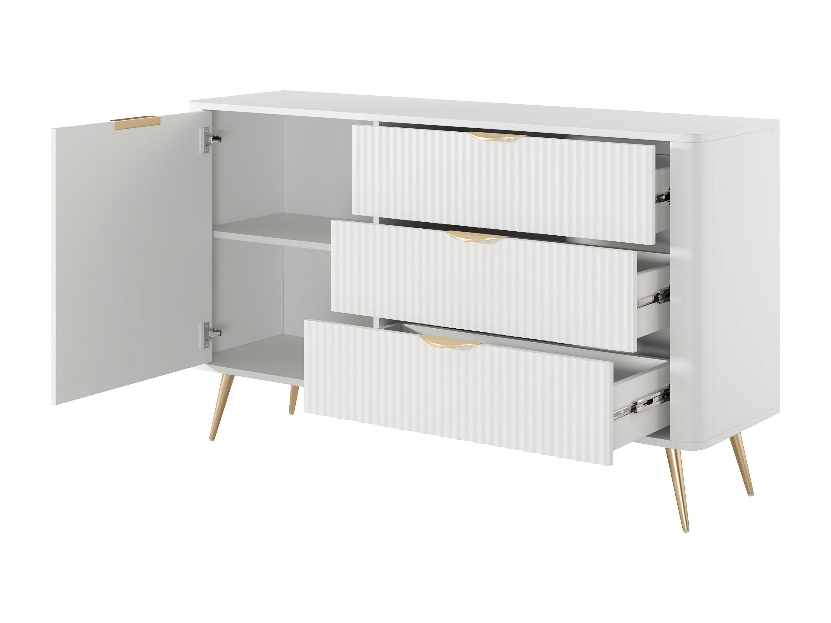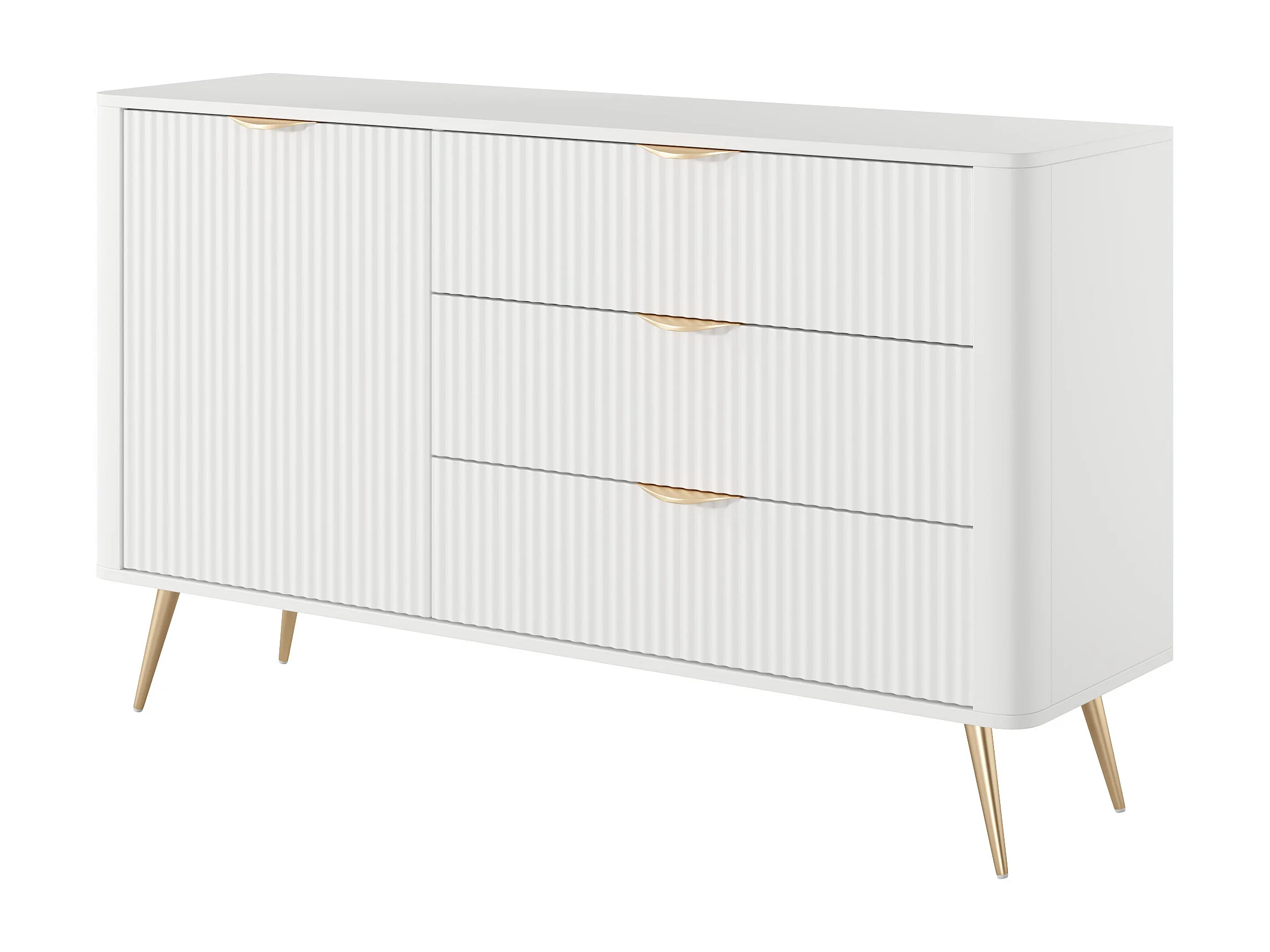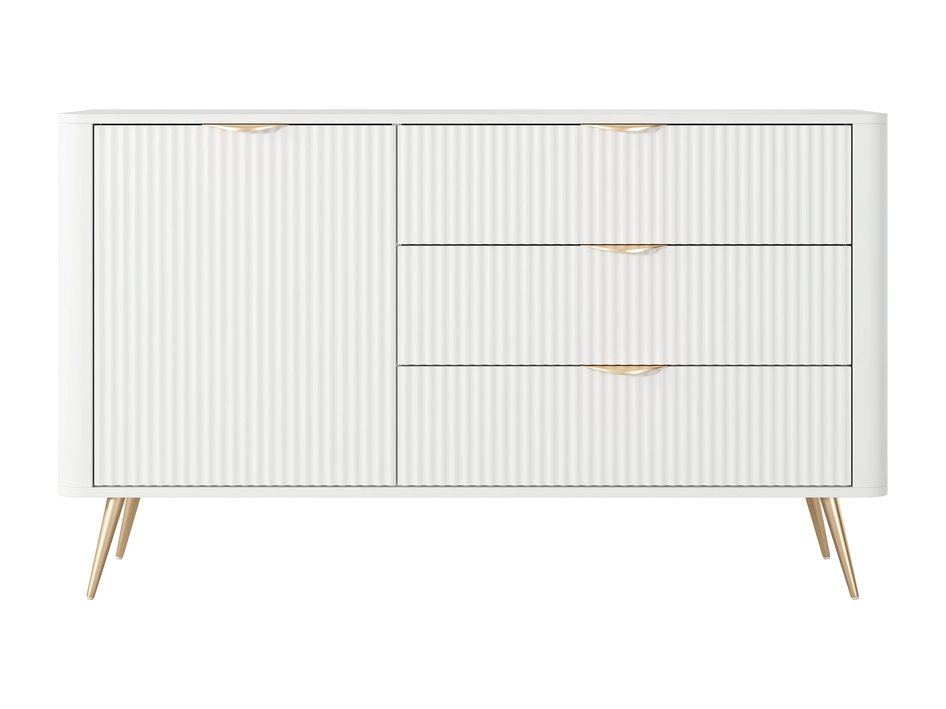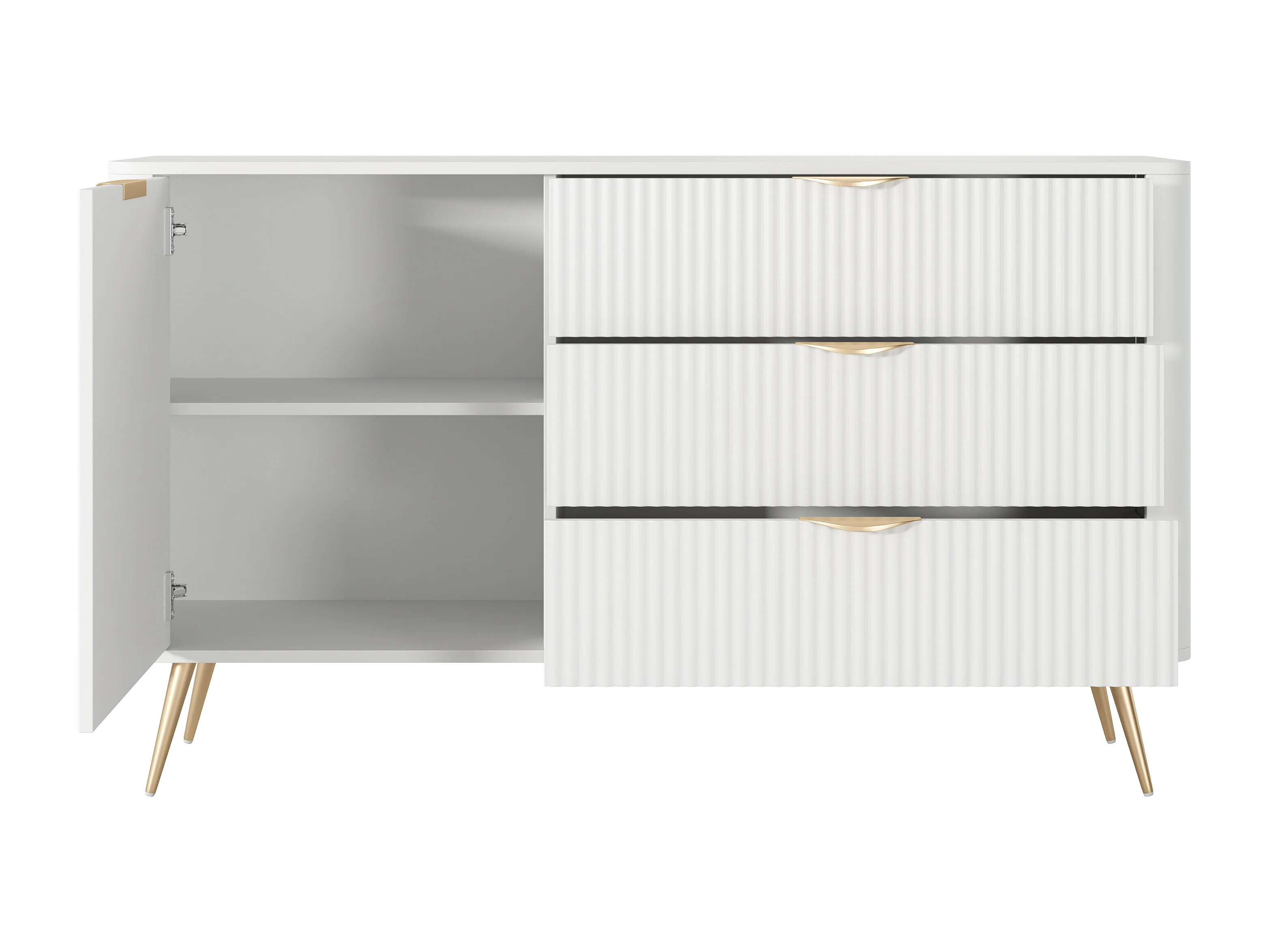 Aparador: 3 gavetas, 1 porta, Branco, 138,2 x 38 x 81,2 cm