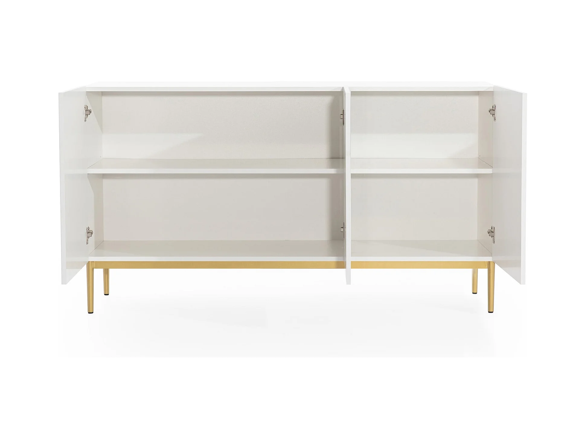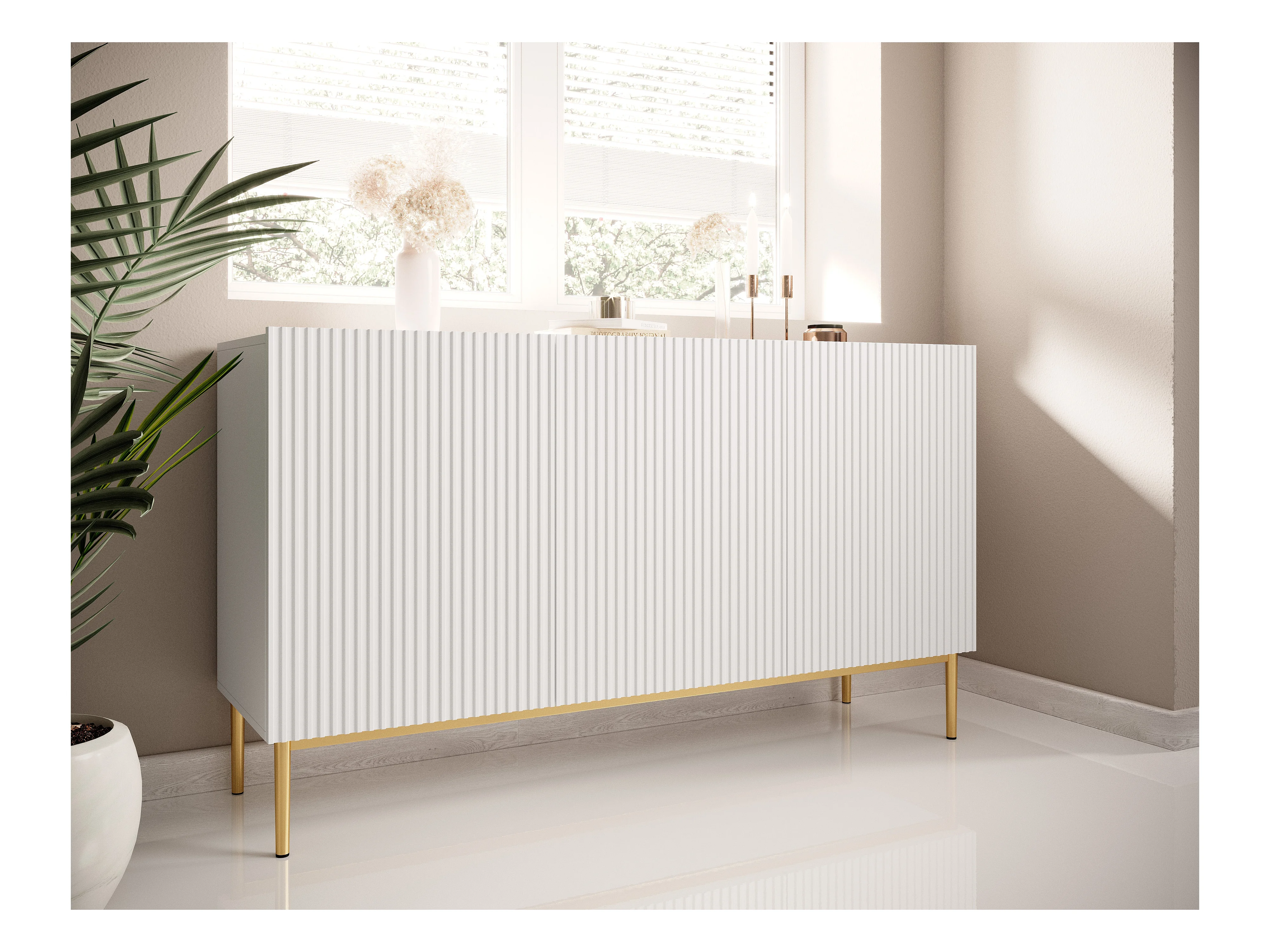 Aparador 3 portas branco com pé em metal dourado 150x45 cm