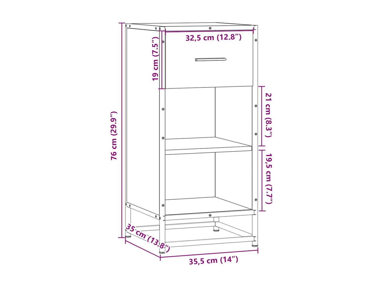 Aparador 35,5x35x76 cm deriv. de madeira/metal carvalho sonoma
