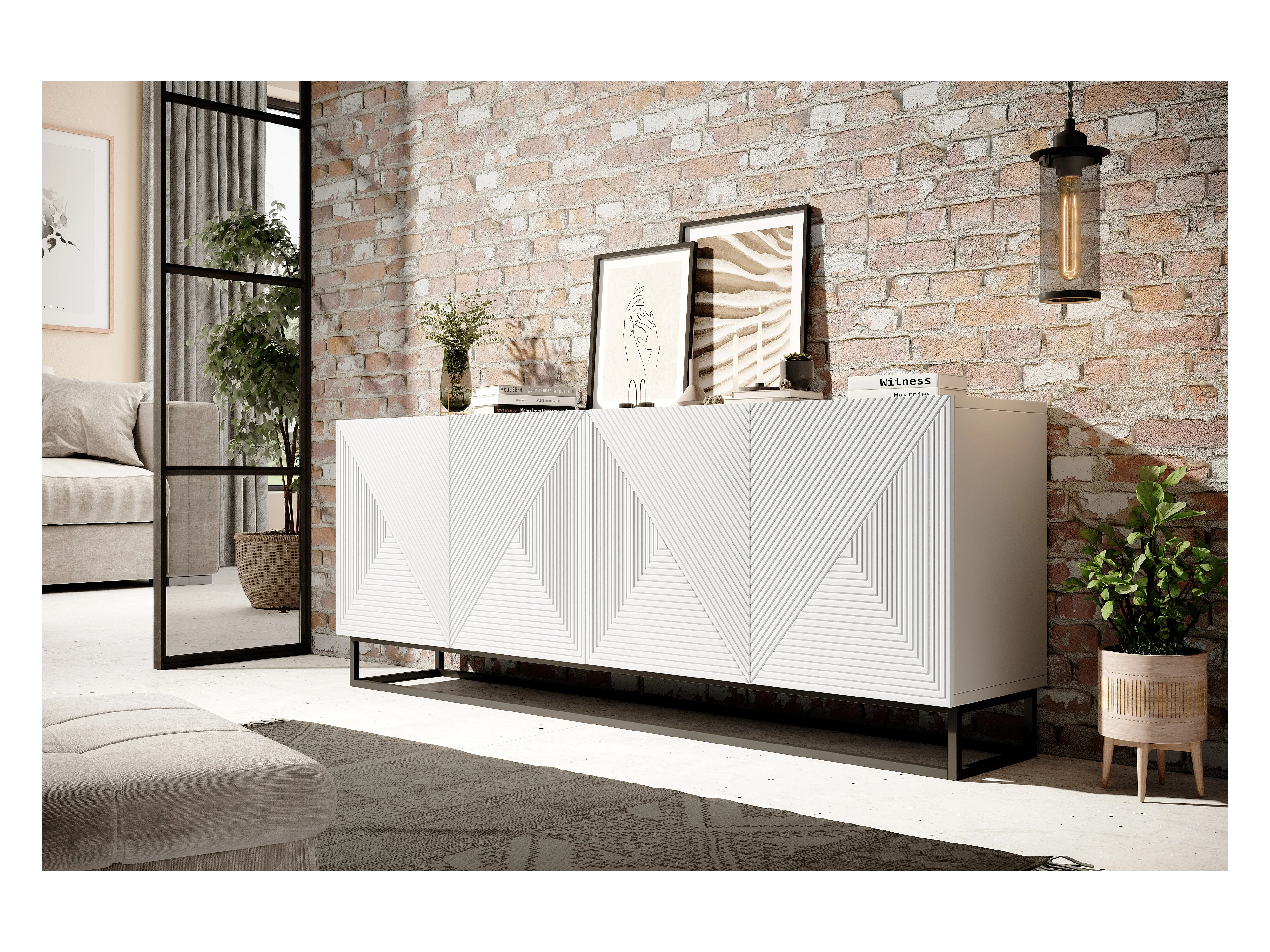 Aparador 4 portas em madeira laminada branca com pé metálico 200x43 cm