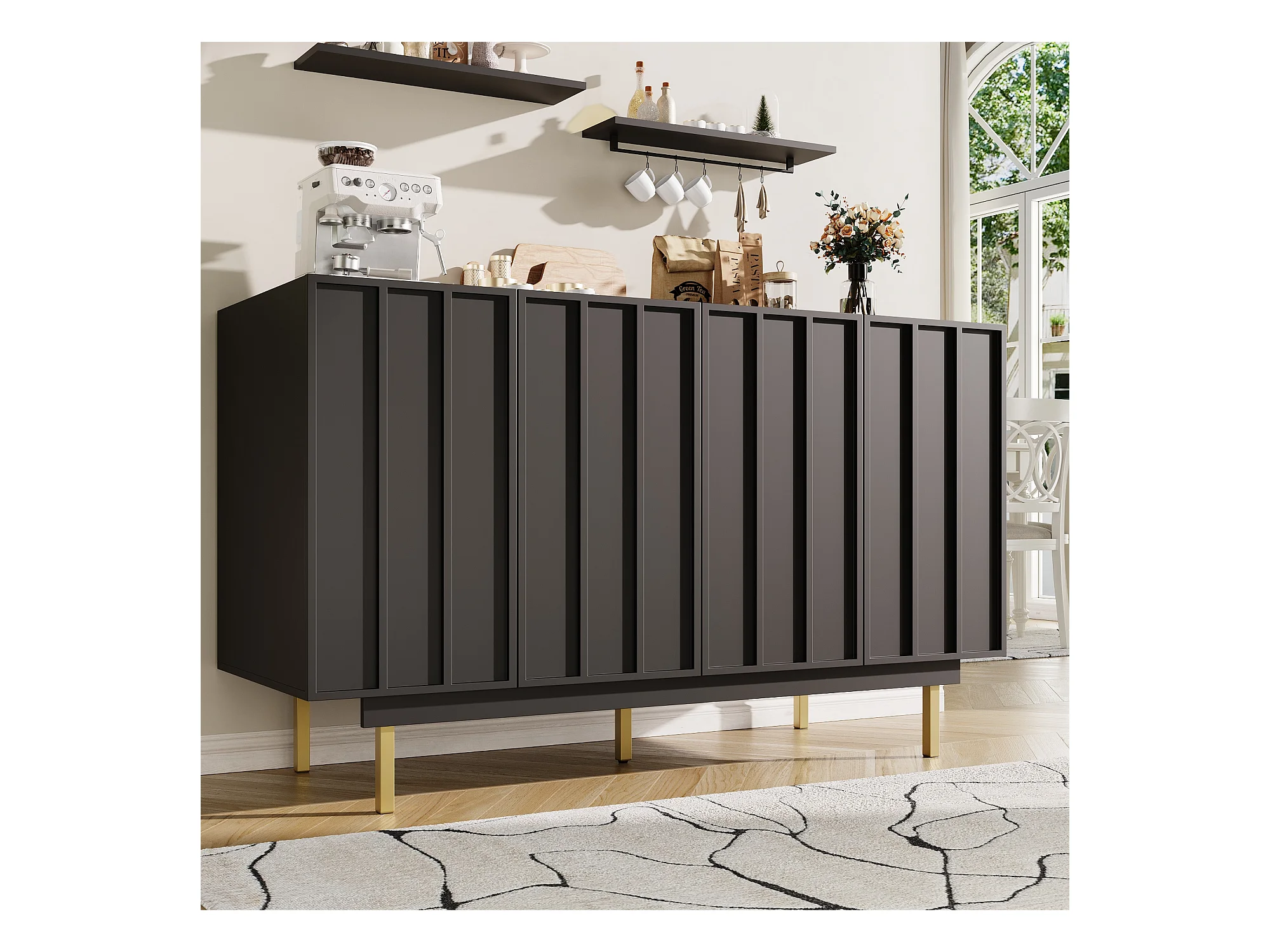 Aparador moderno em MDF preto 120 cm com 4 portas esculpidas para armazenamento na sala de estar e jantar
