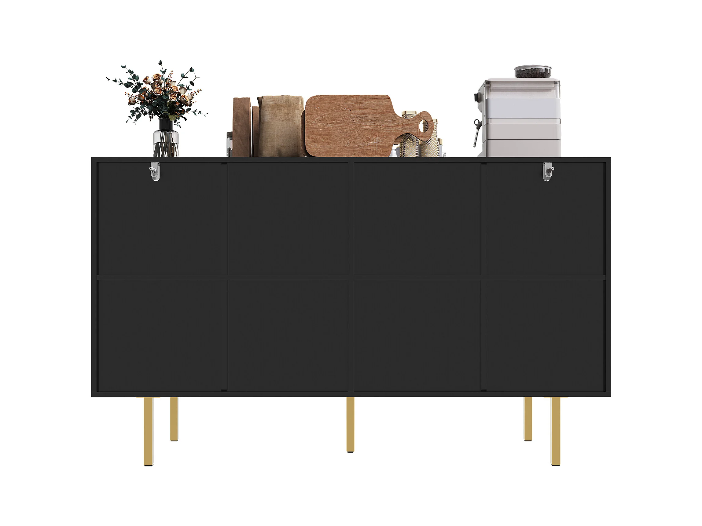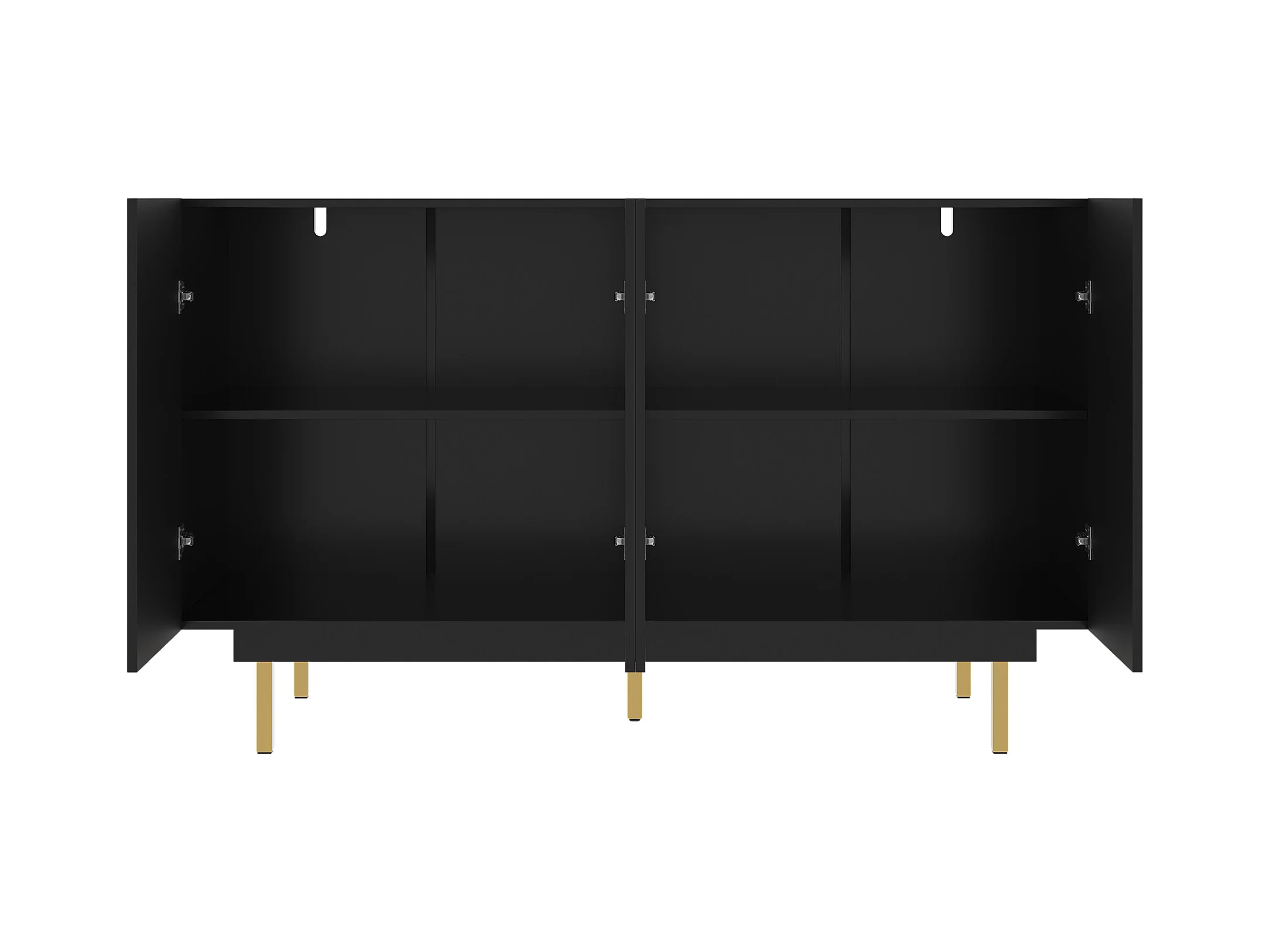 Aparador 4 Portas MDF Metal 140x38,5x82,5cm Sala Cozinha Preto