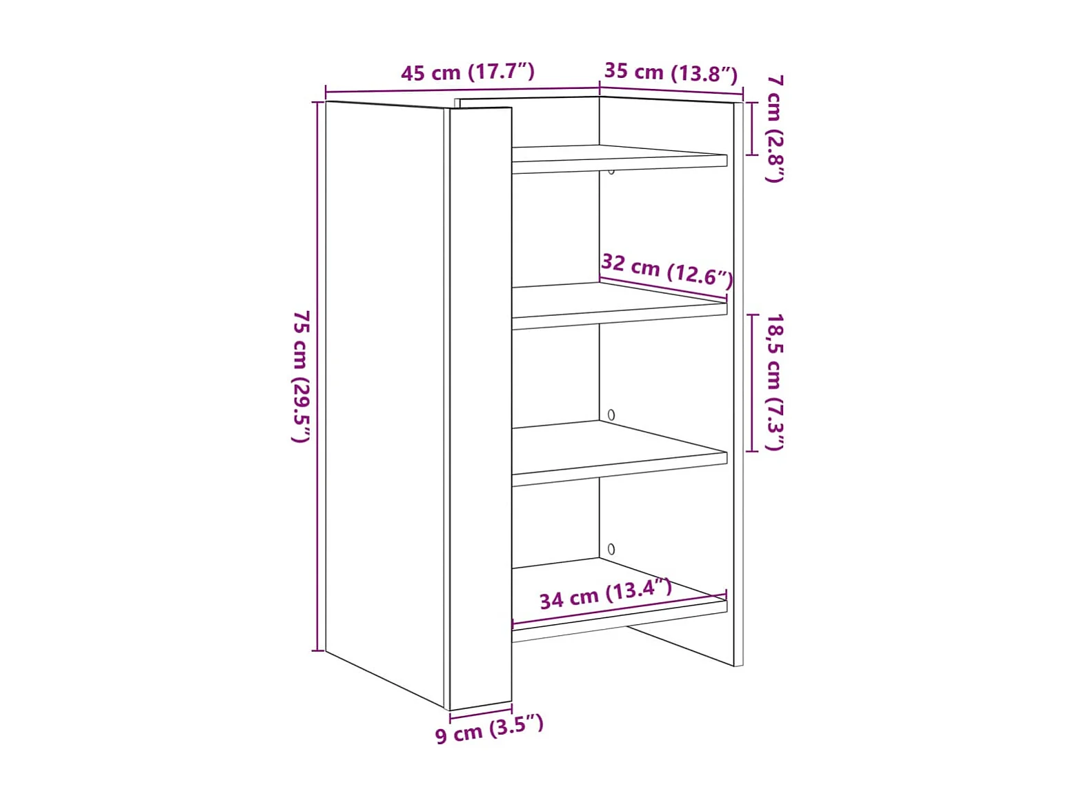 Aparador 45x35x75 cm derivados de madeira carvalho sonoma