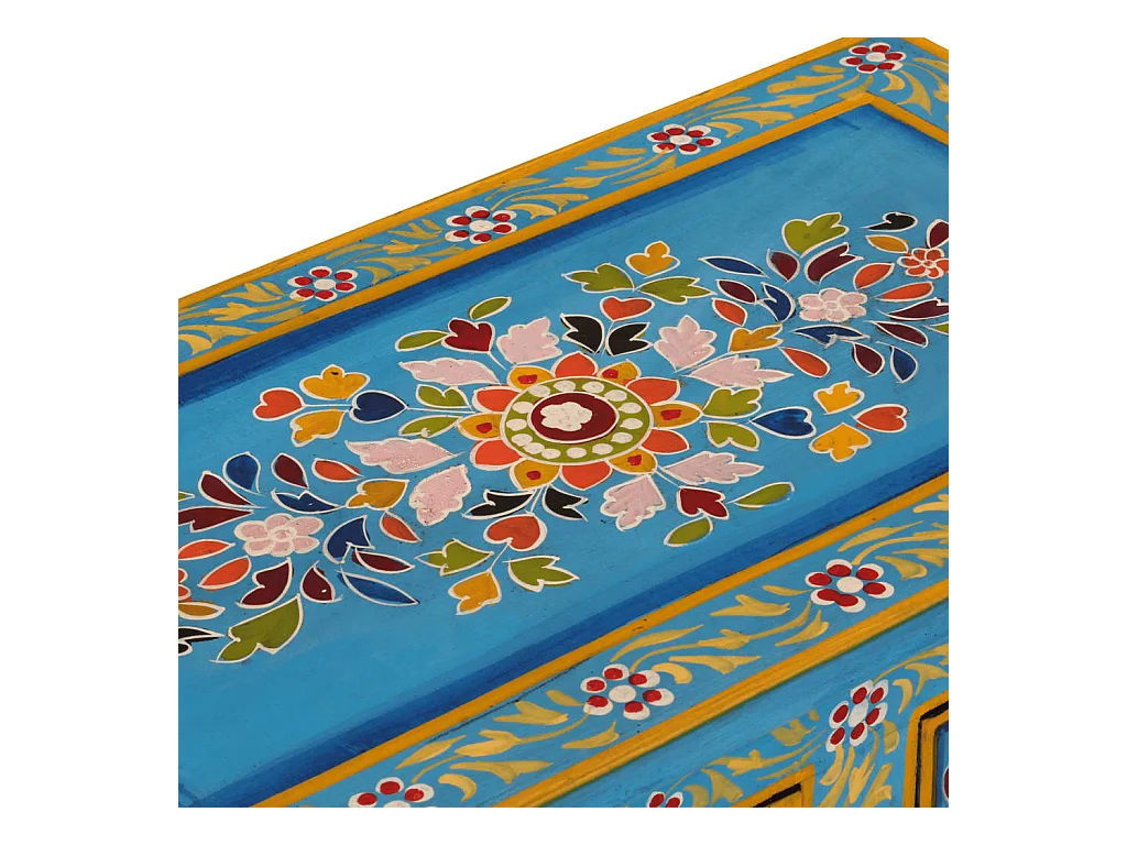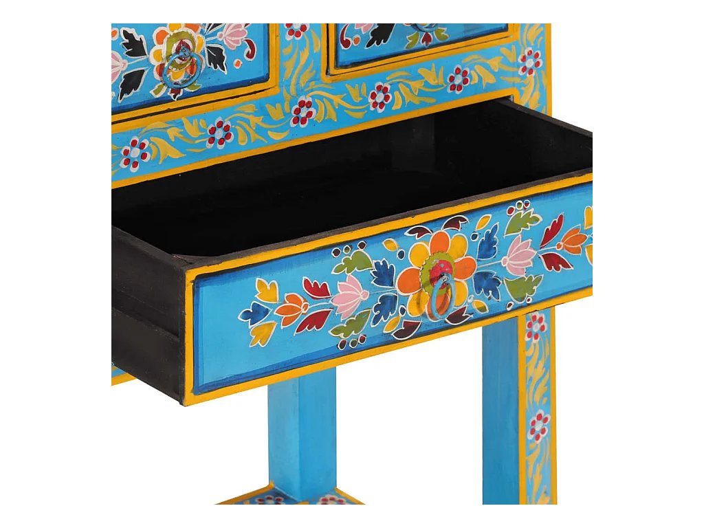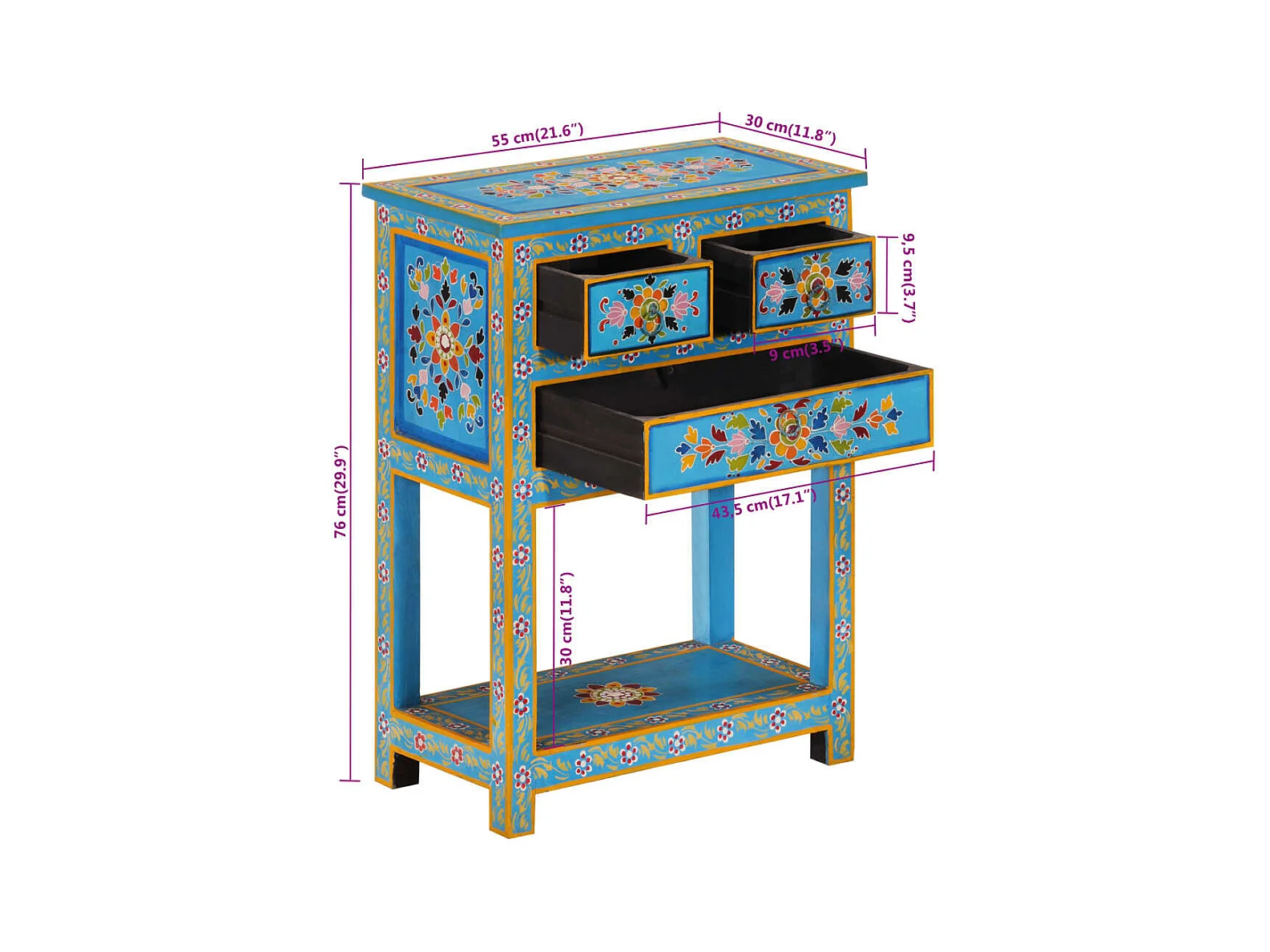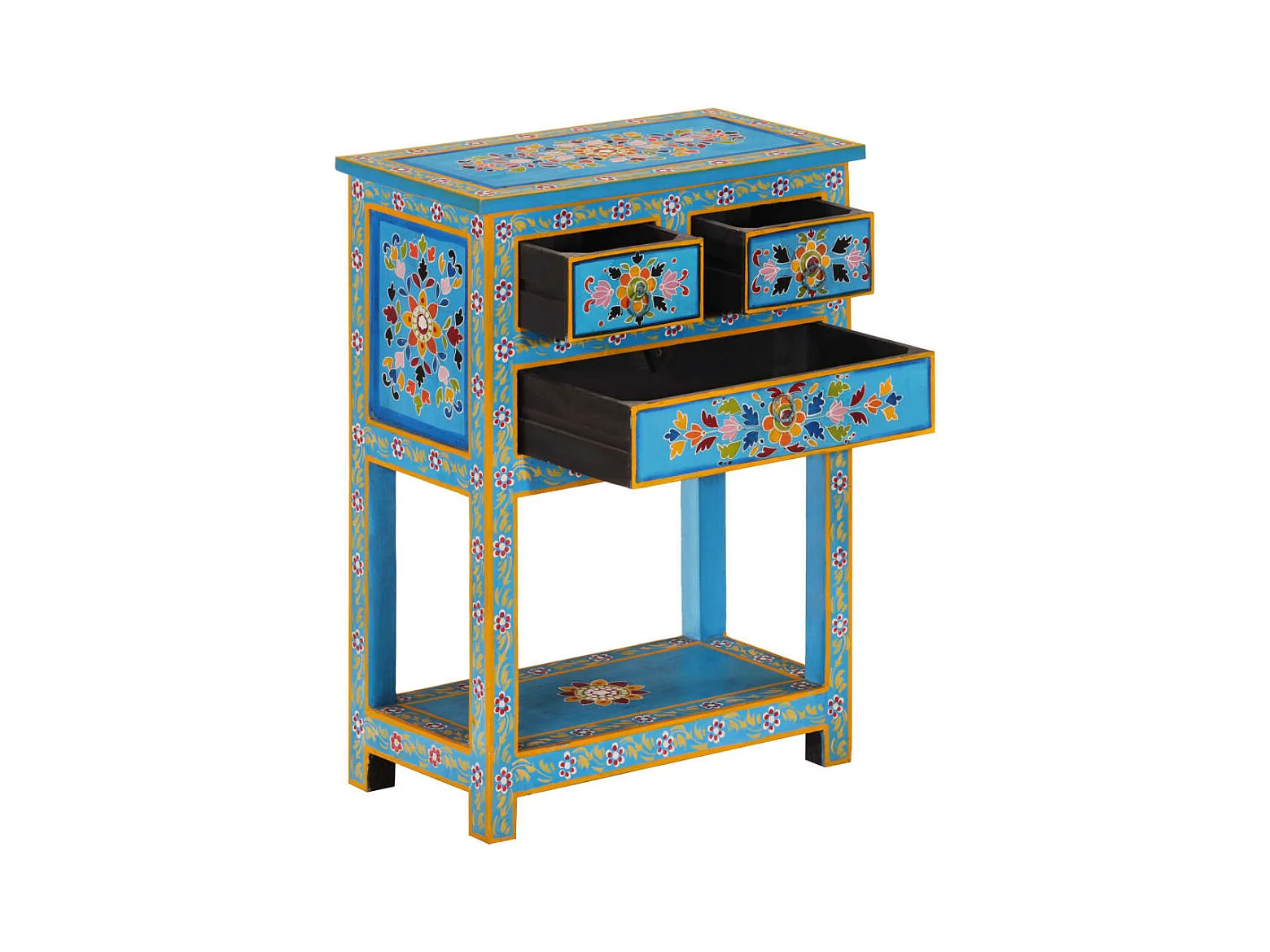 Mesa consola madeira mangueira maciça azul pintada à mão