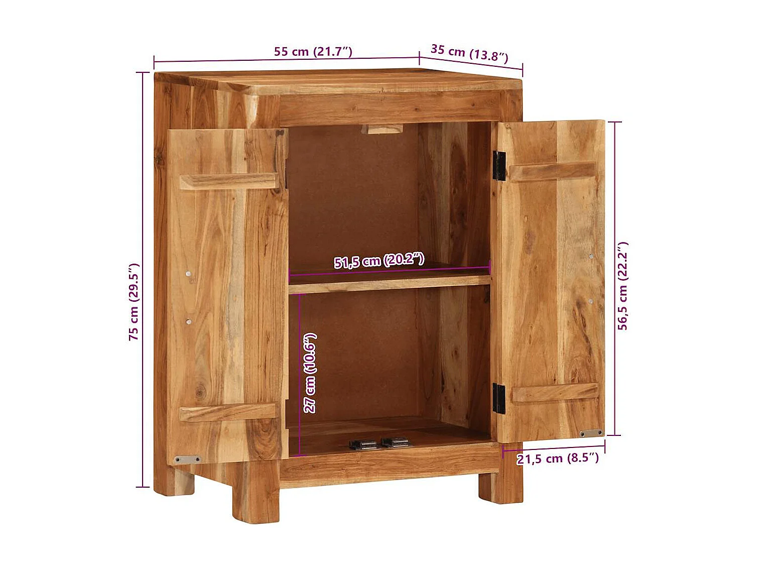 Aparador em madeira de mangueira maciça 85x30x75 cm