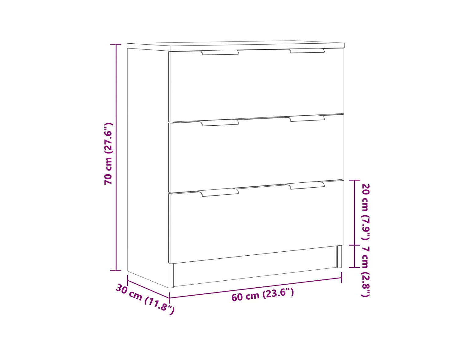 Aparadores 2 peças 60x30x70 cm madeira processada carvalho fumado