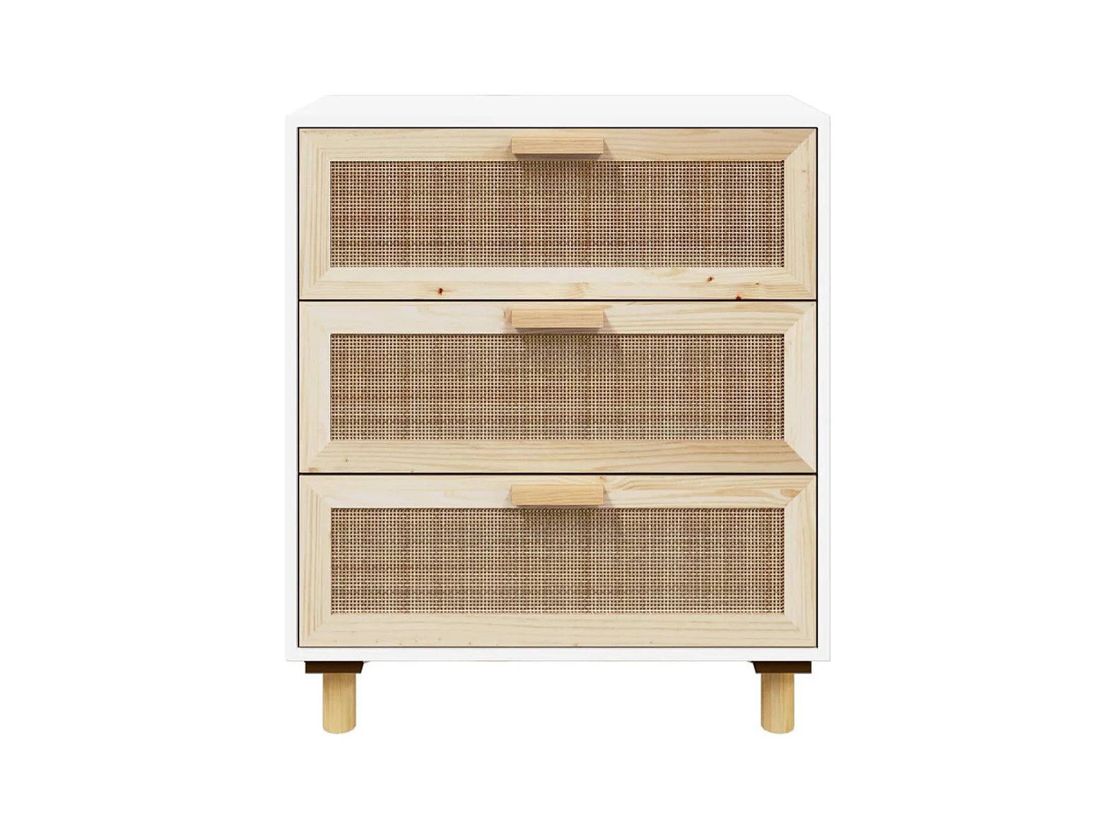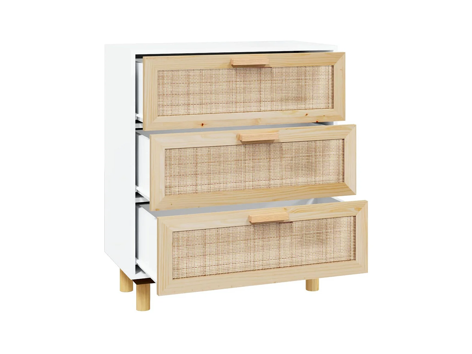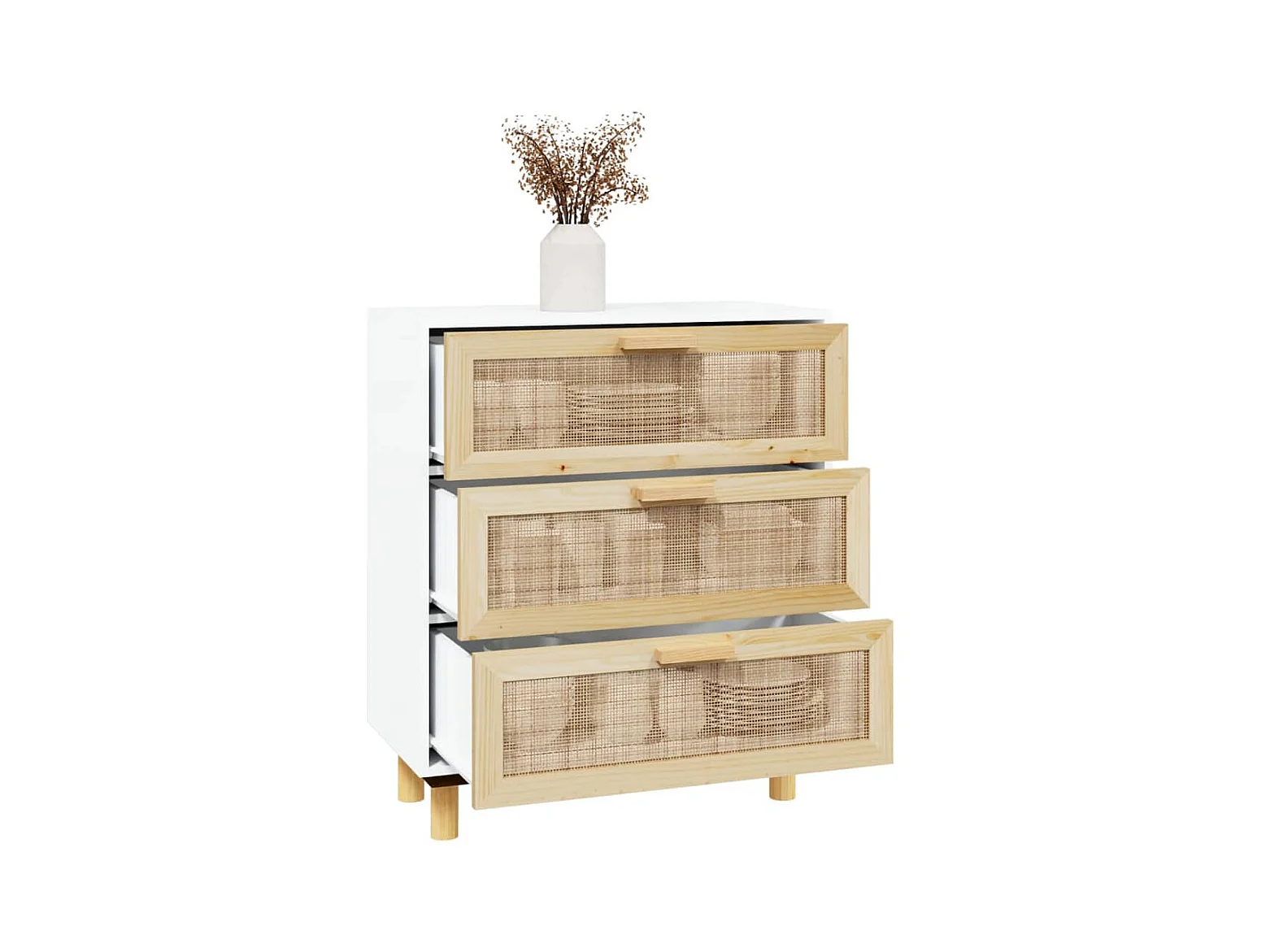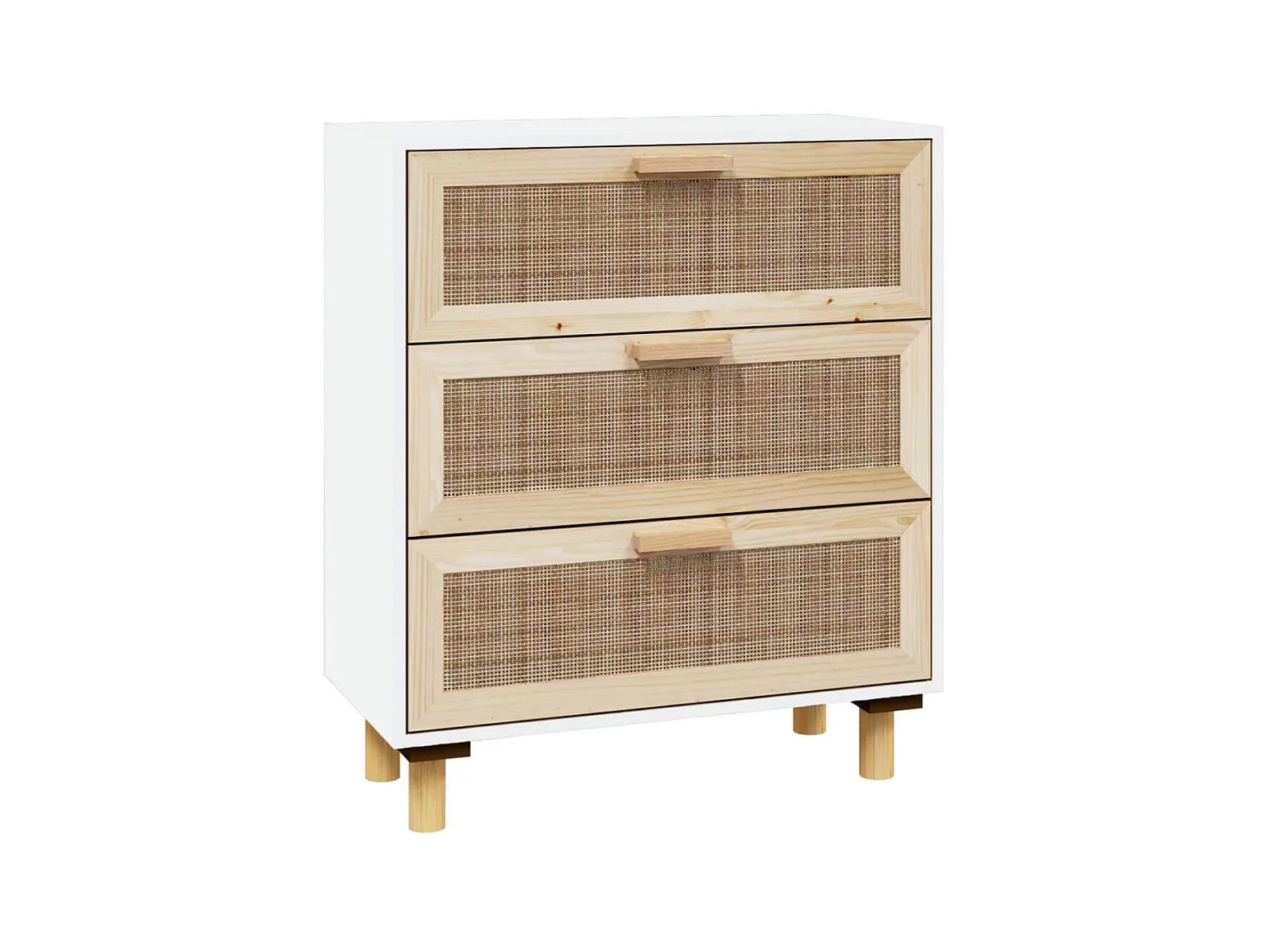 Aparador 60x30x70 cm madeira pinho maciça/vime natural branco PT210381