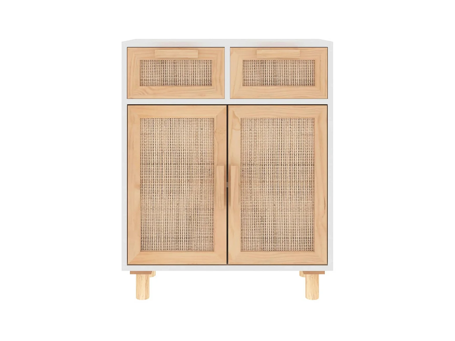 Aparador 60x30x70 cm madeira pinho maciça/vime natural branco PT210381