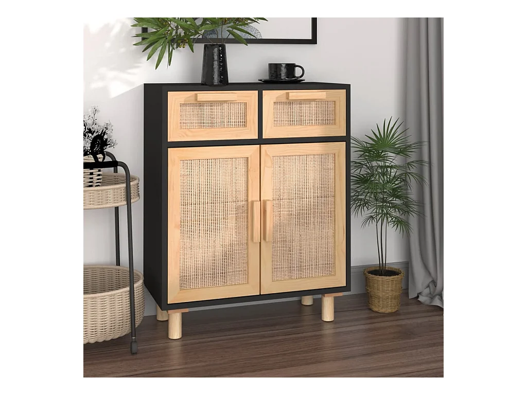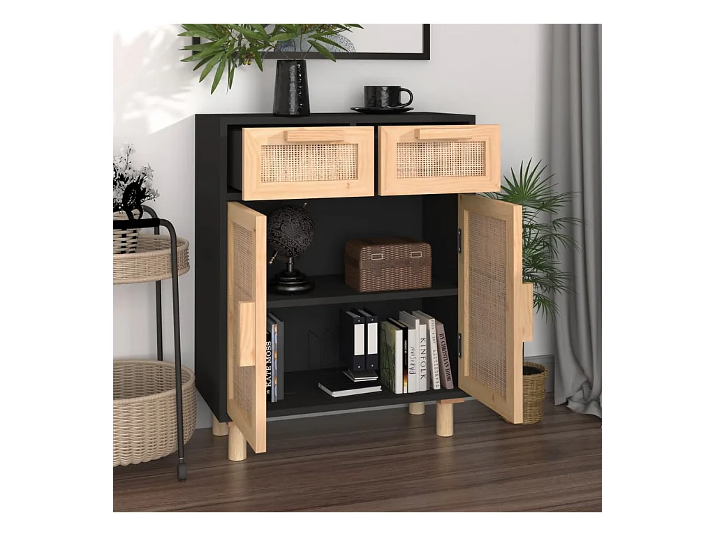 Aparador 60x30x75 cm pinho maciço/vime natural preto PT147159