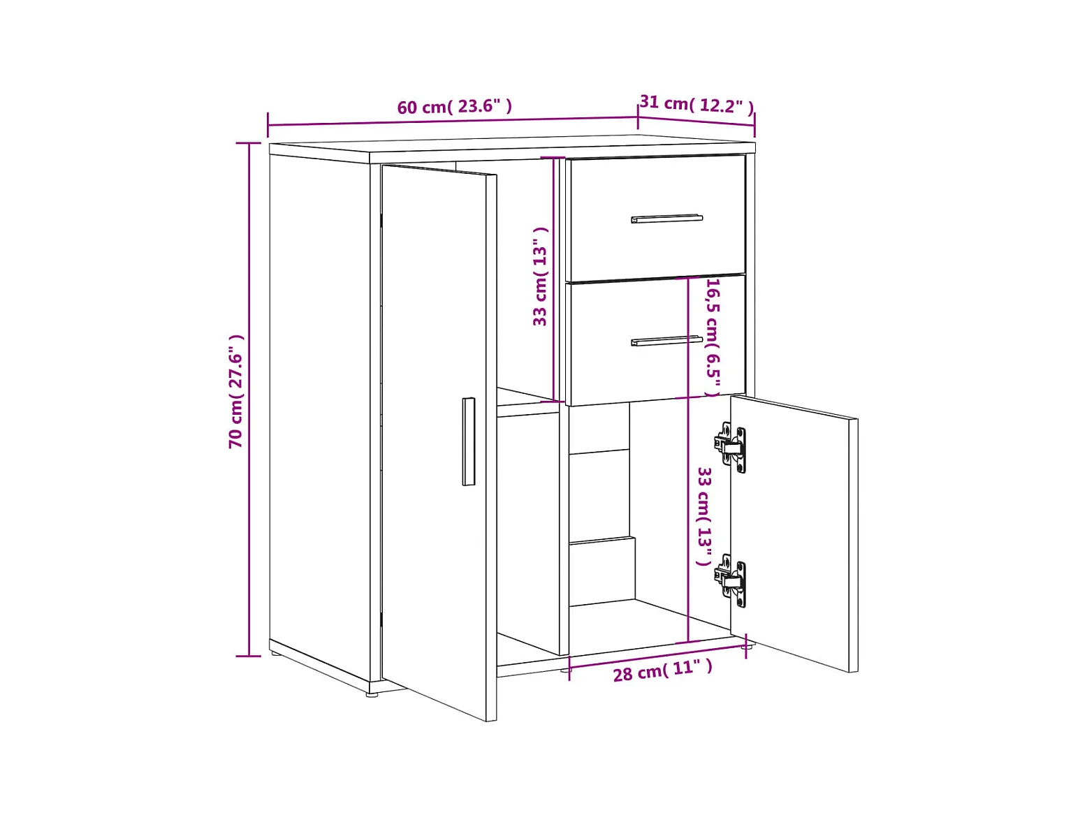 Aparador 60x31x70 cm derivados de madeira cinzento sonoma