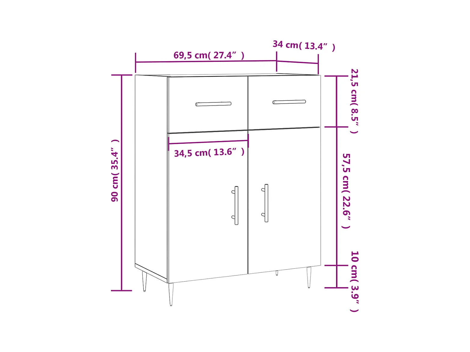 Aparador 69,5x34x90 cm madeira processada branco brilhante