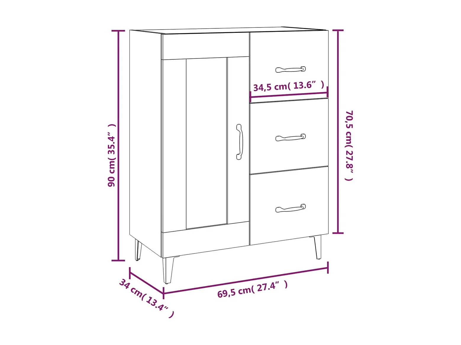Aparador 69,5x34x90 cm madeira processada cor sonoma cinzento