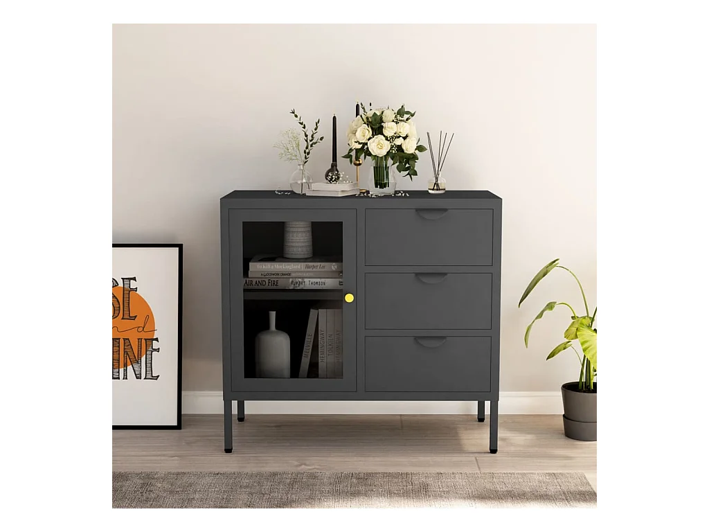 Aparador buffet cômoda armário organizador cozinha sala sala 70 x 35 x 70 cm aço e vidro antracite 02_0029709