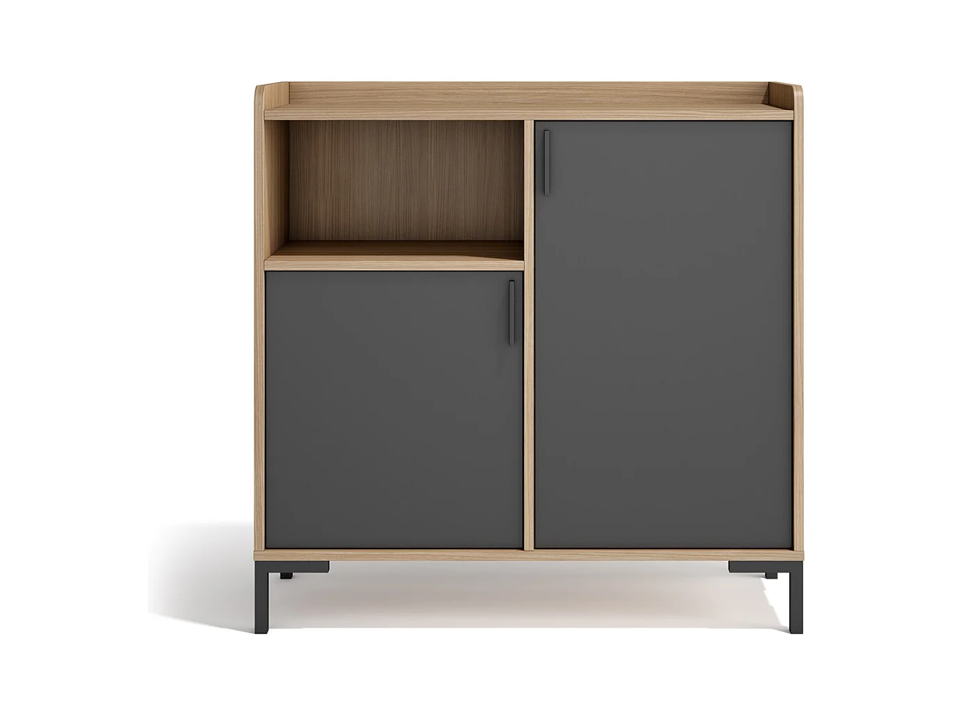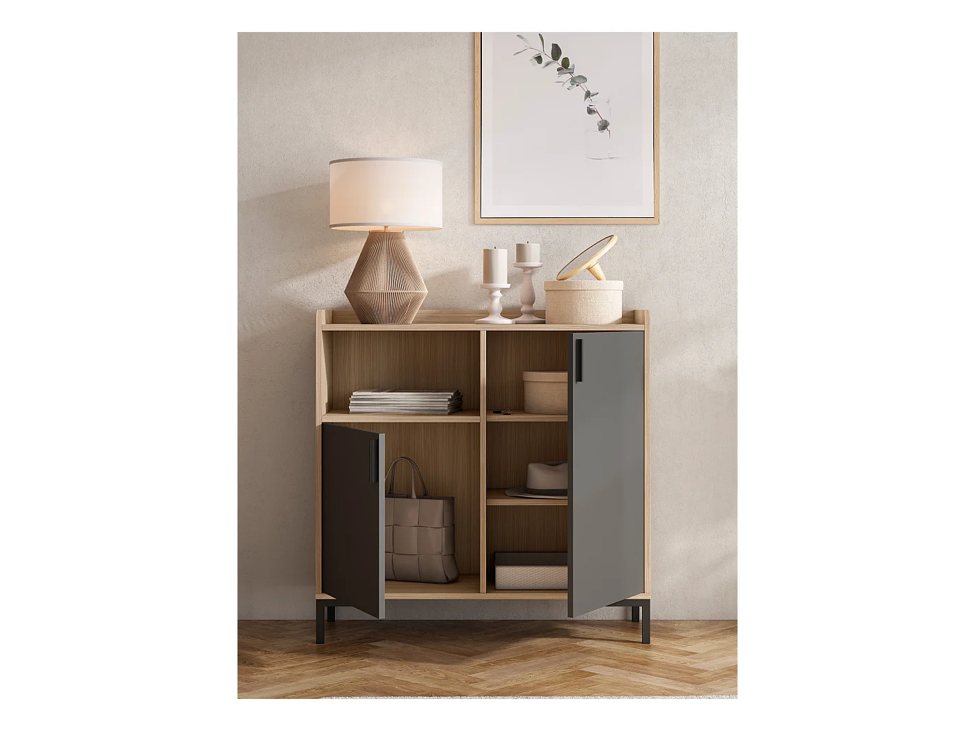 Aparador - A88cm x L90cm x P33cm nogueira clara portas grafite - Dover