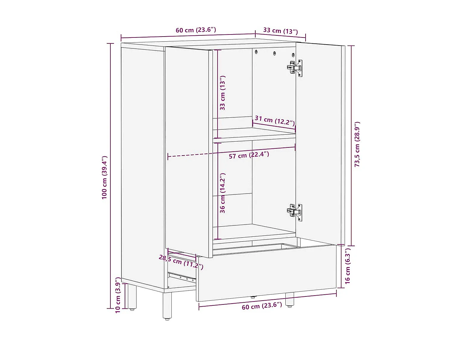 Aparador alto 60x33x100 cm madeira de mangueira maciça castanho