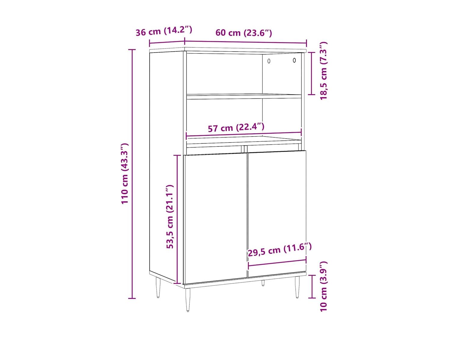Aparador alto 60x36x110 cm derivados madeira carvalho artisiano