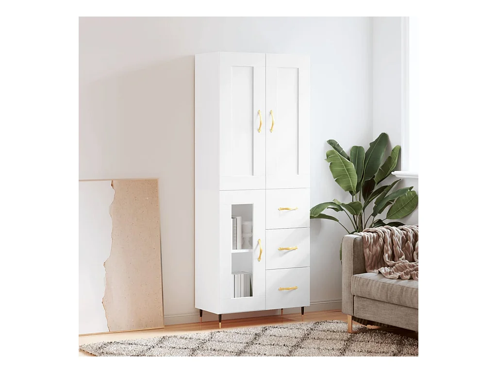 Aparador alto 69,5x34x180 cm derivados de madeira branco PT568469