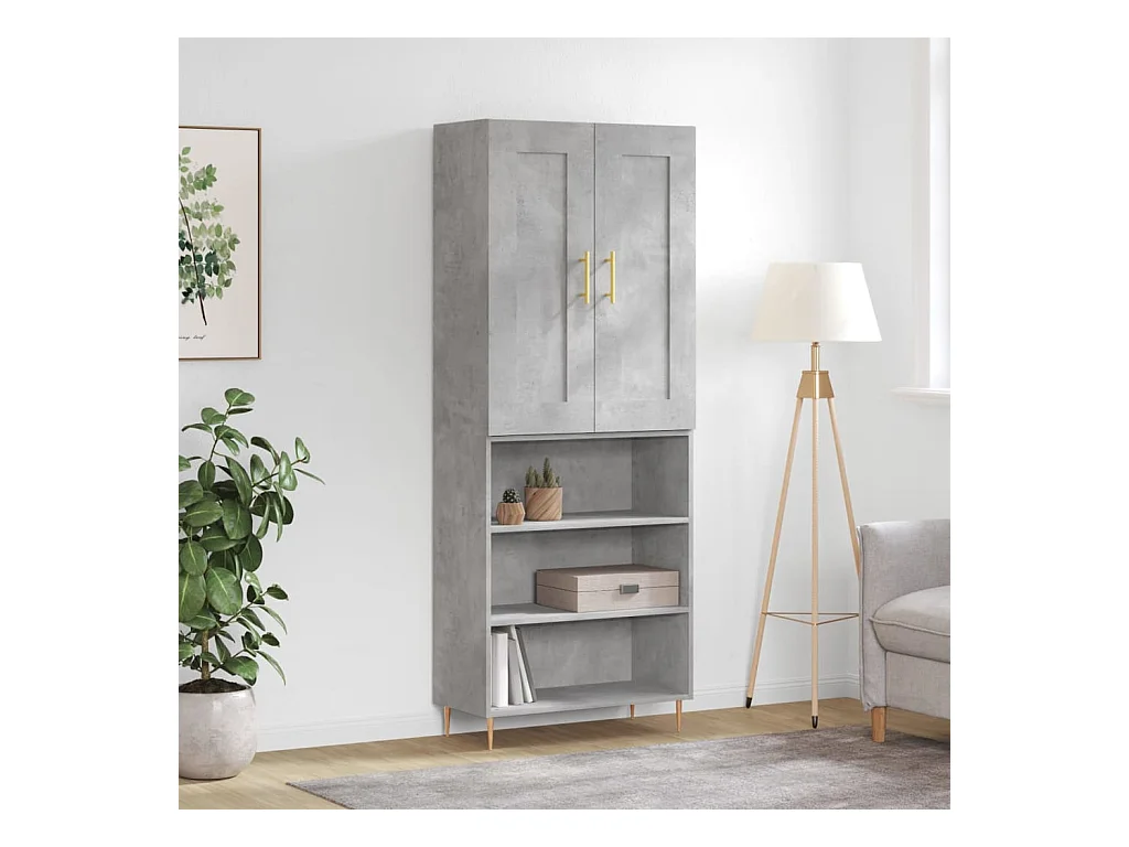 Aparador alto 69,5x34x180 cm derivados de madeira cinza cimento PT141462