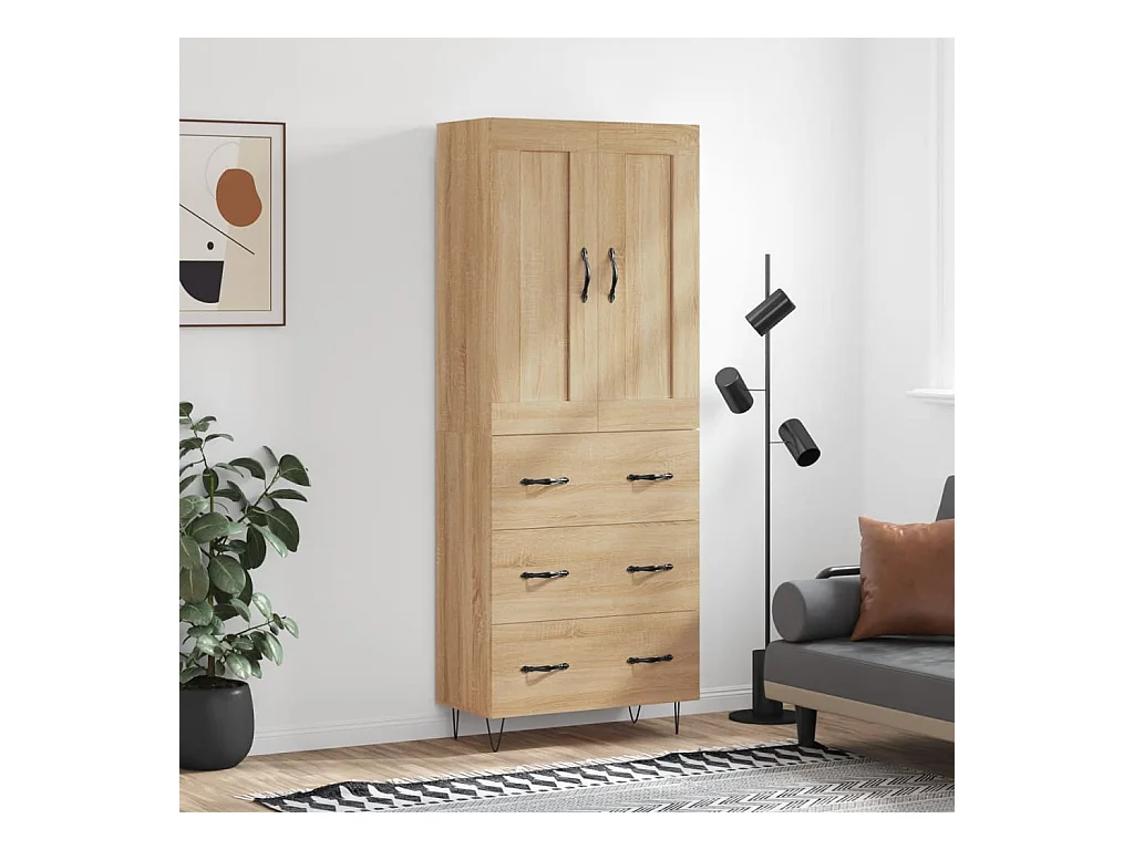 Aparador alto 69,5x34x180 cm derivados de madeira cor sonoma PT312065