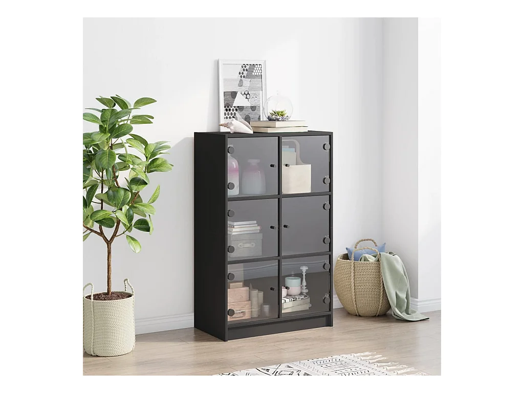 Aparador alto c/ portas 68x37x109 cm derivados de madeira preto PT720271