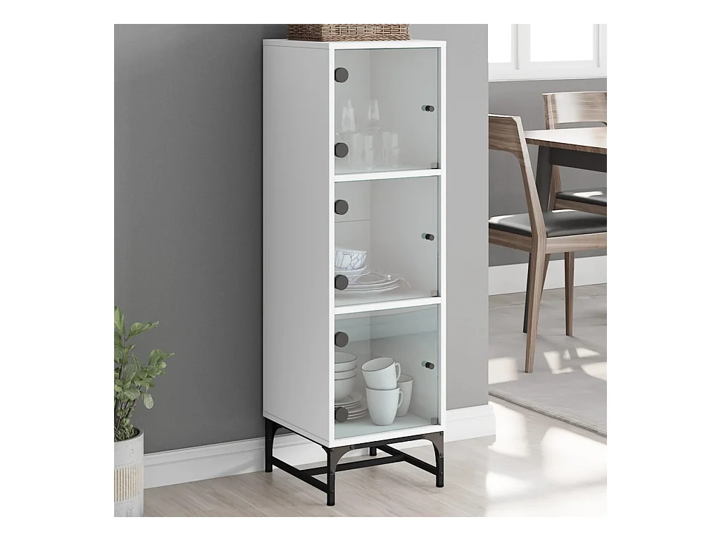 Aparador alto c/ portas de vidro 35x37x109 cm branco PT535747