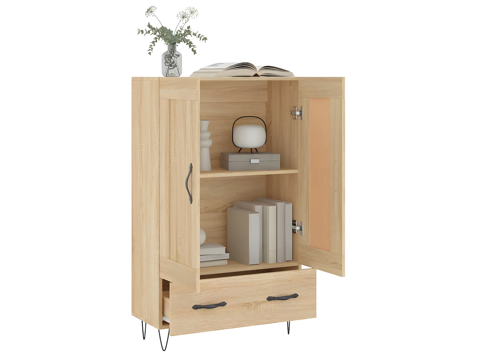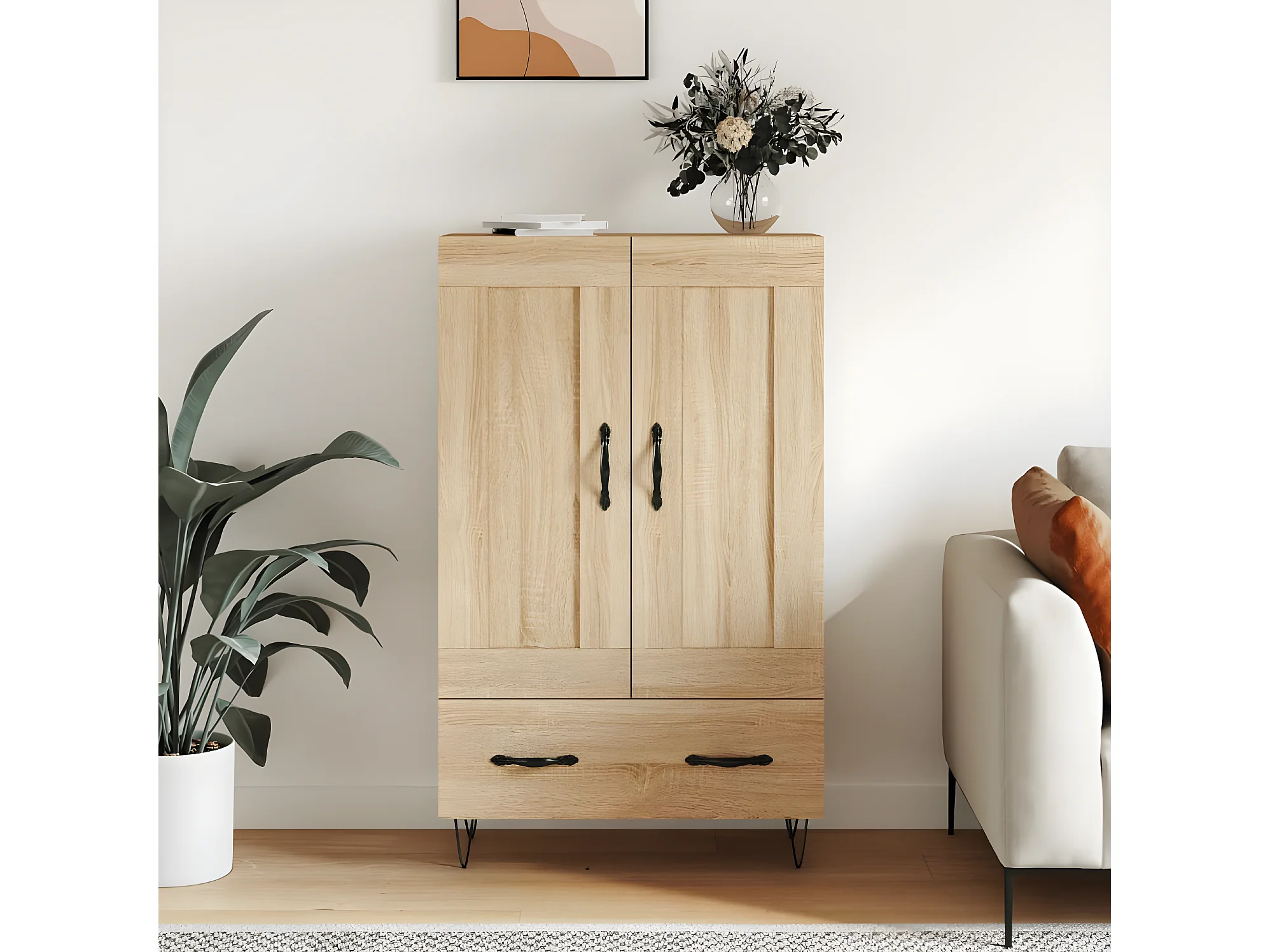 Aparador alto de carvalho Sonoma 69,5x31x115 cm madeira trabalhada