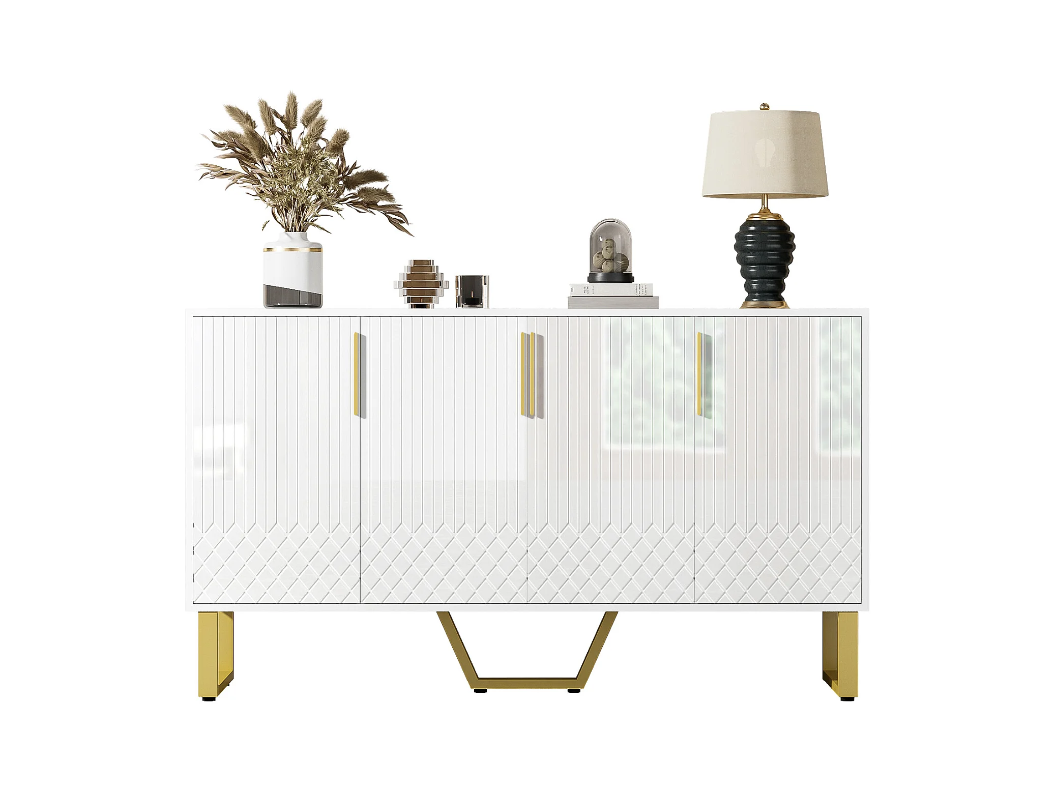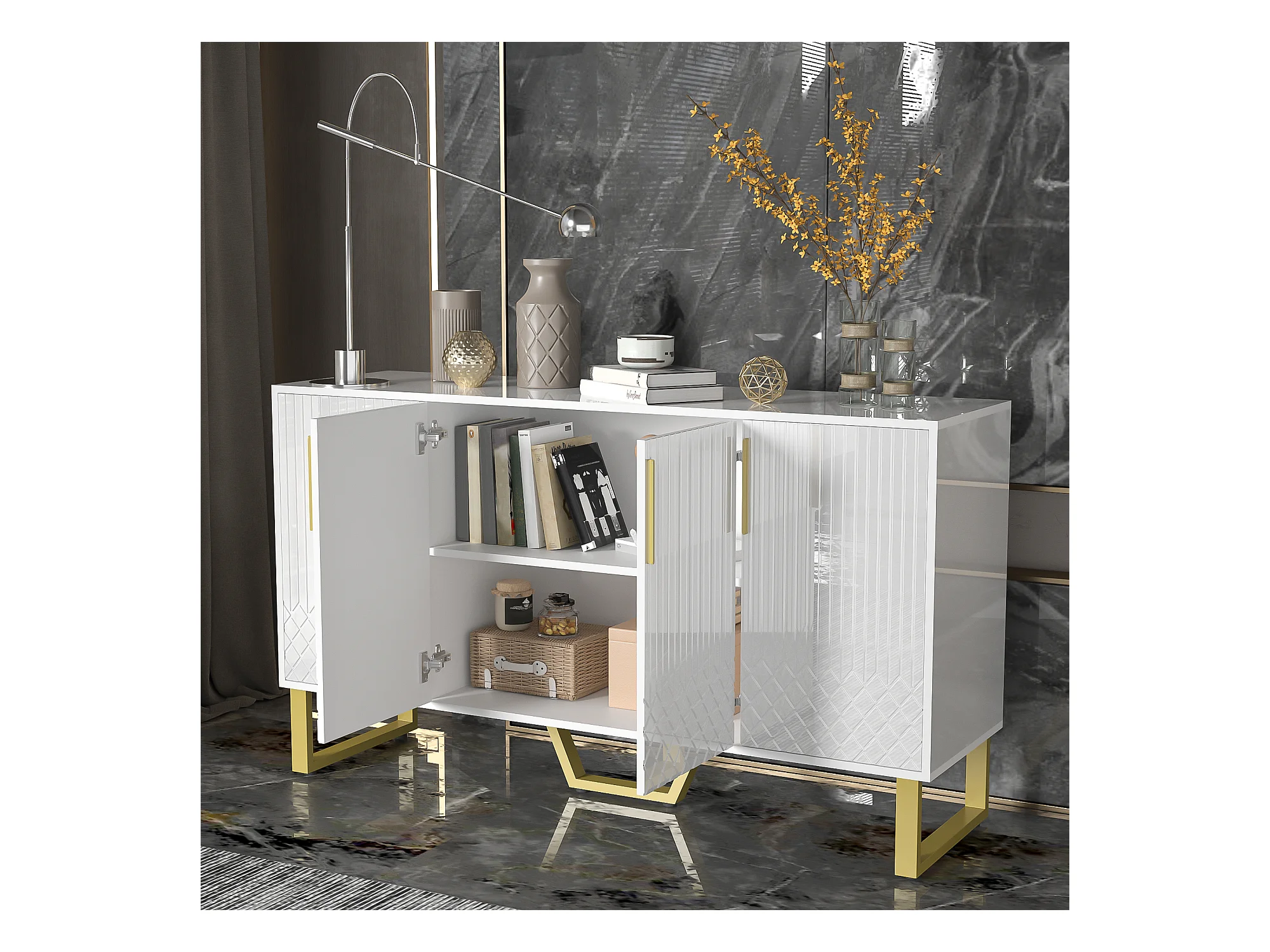 Aparador branco 140 cm MDF 4 portas design geométrico metal sala de estar sala de estar moderna