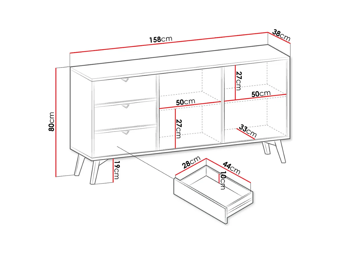 Cómoda Lomsore 104, Com gavetas e portas, Número de gavetas: 3