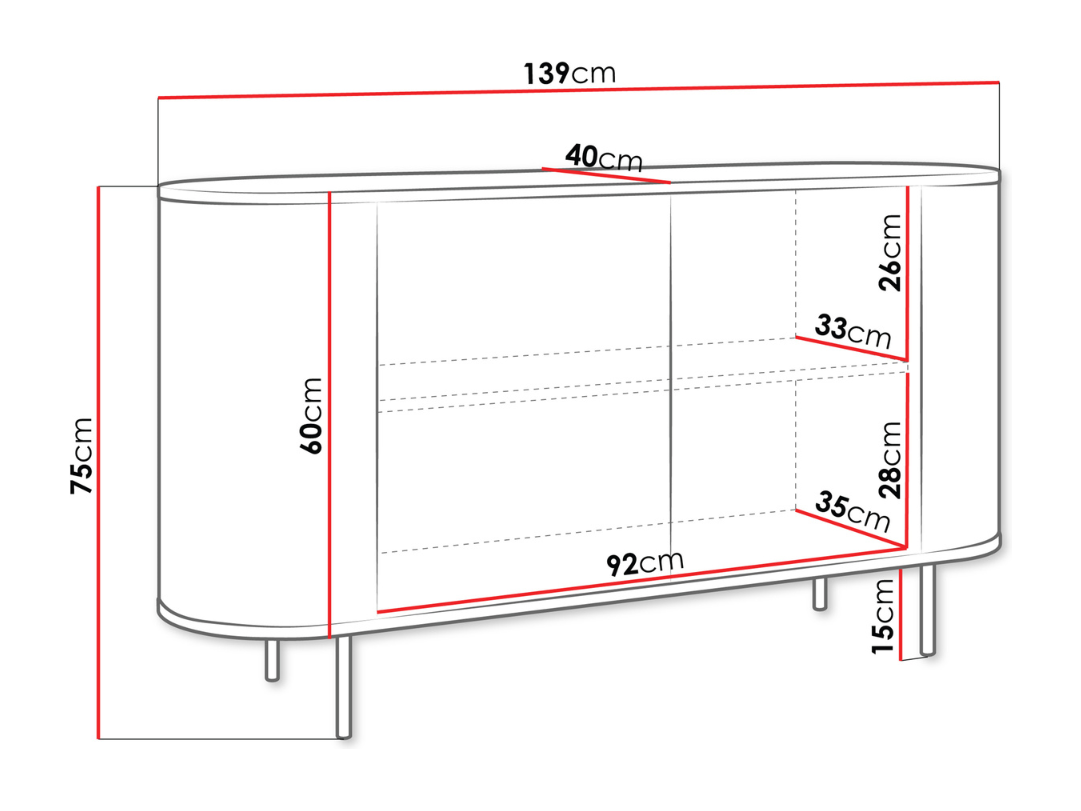 Aparador AMBIHOME DORE 01 - Carvalho Cremona/Branco, C139xP40xA75cm