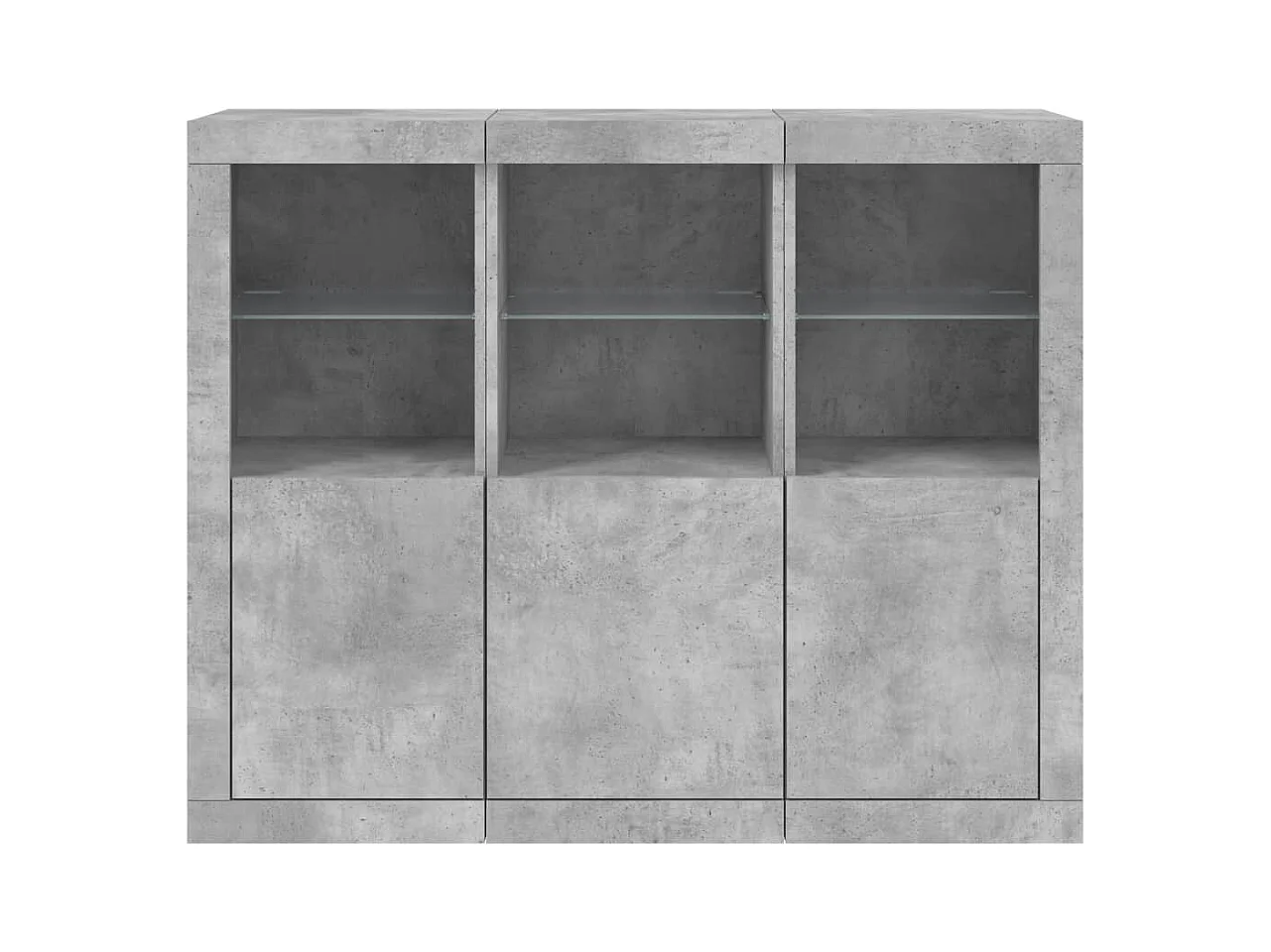 Aparador Aparador Cômoda Armário Unidade de armazenamento Organizador Cozinha Sala de estar com luzes LED 3 peças Madeira projetada cinza 02_0037223