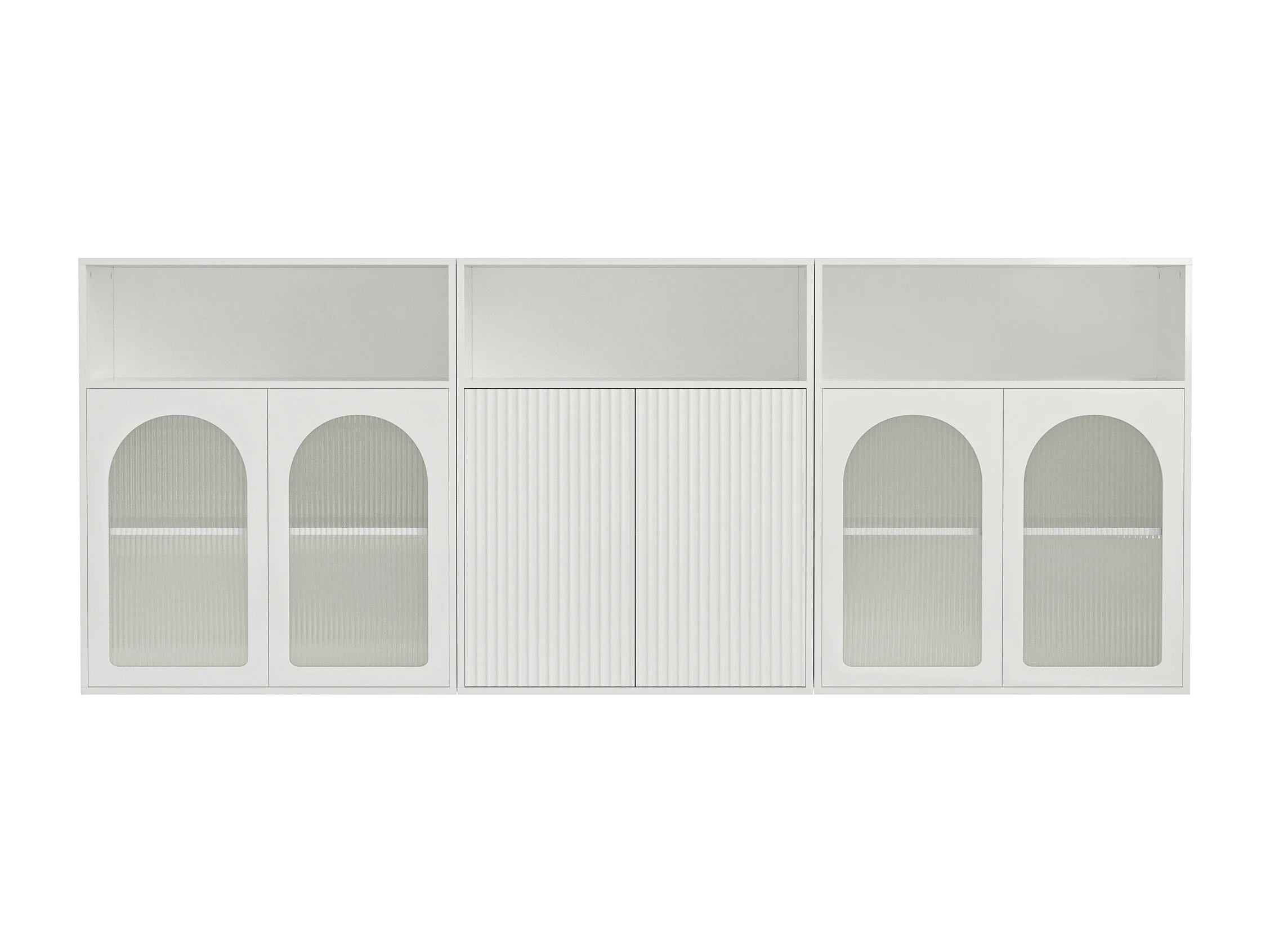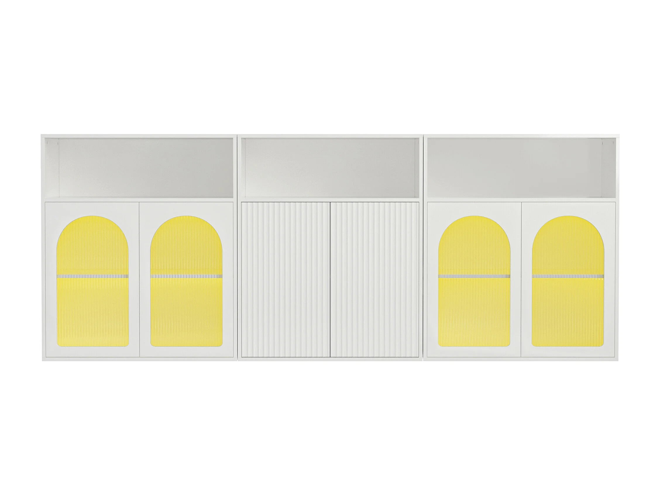 Aparador, Armário de arrumação com 6 portas - 210 x 35 x 90 cm - Madeira MDF, LED - para Cozinha, Sala - Branco