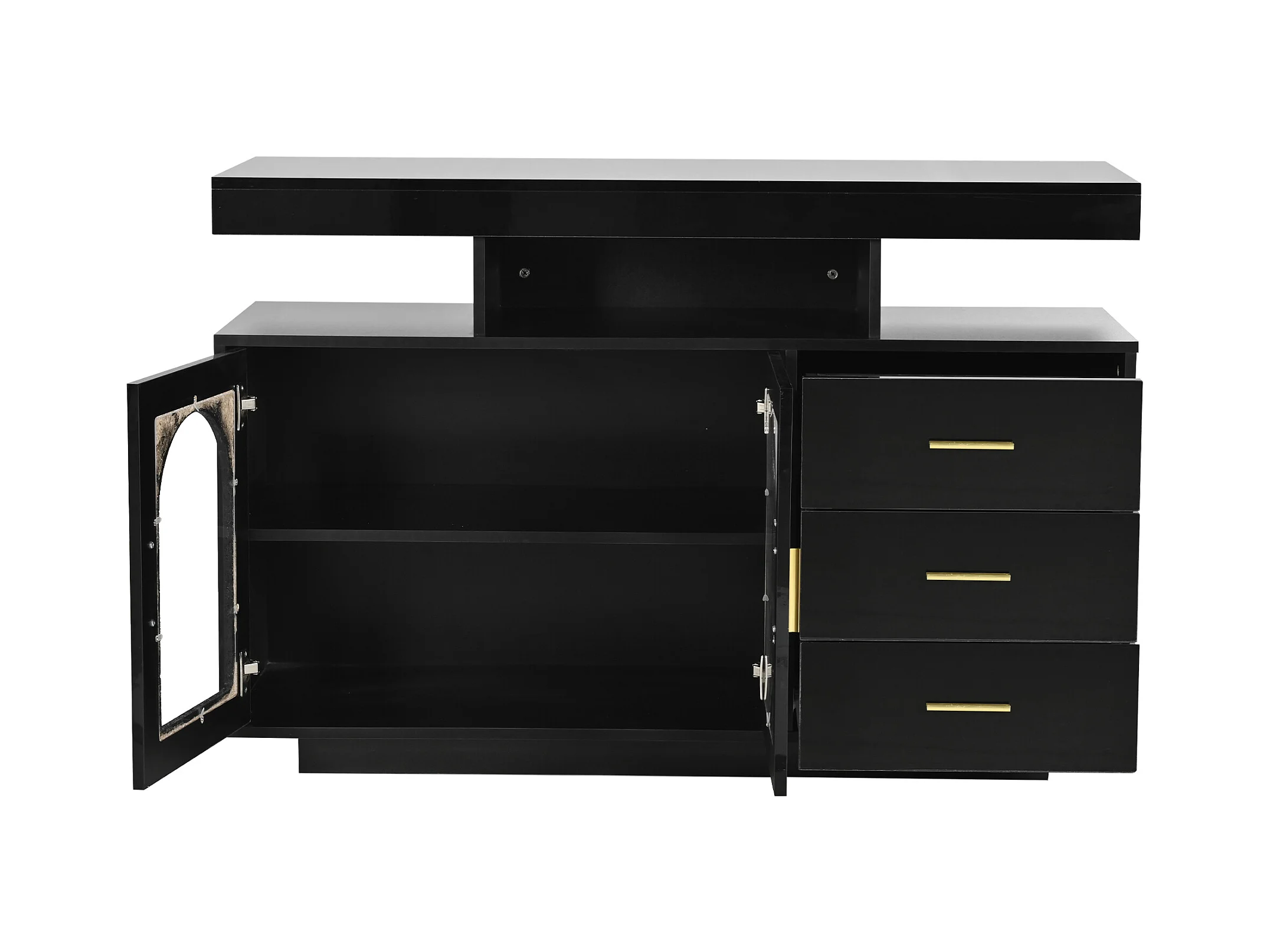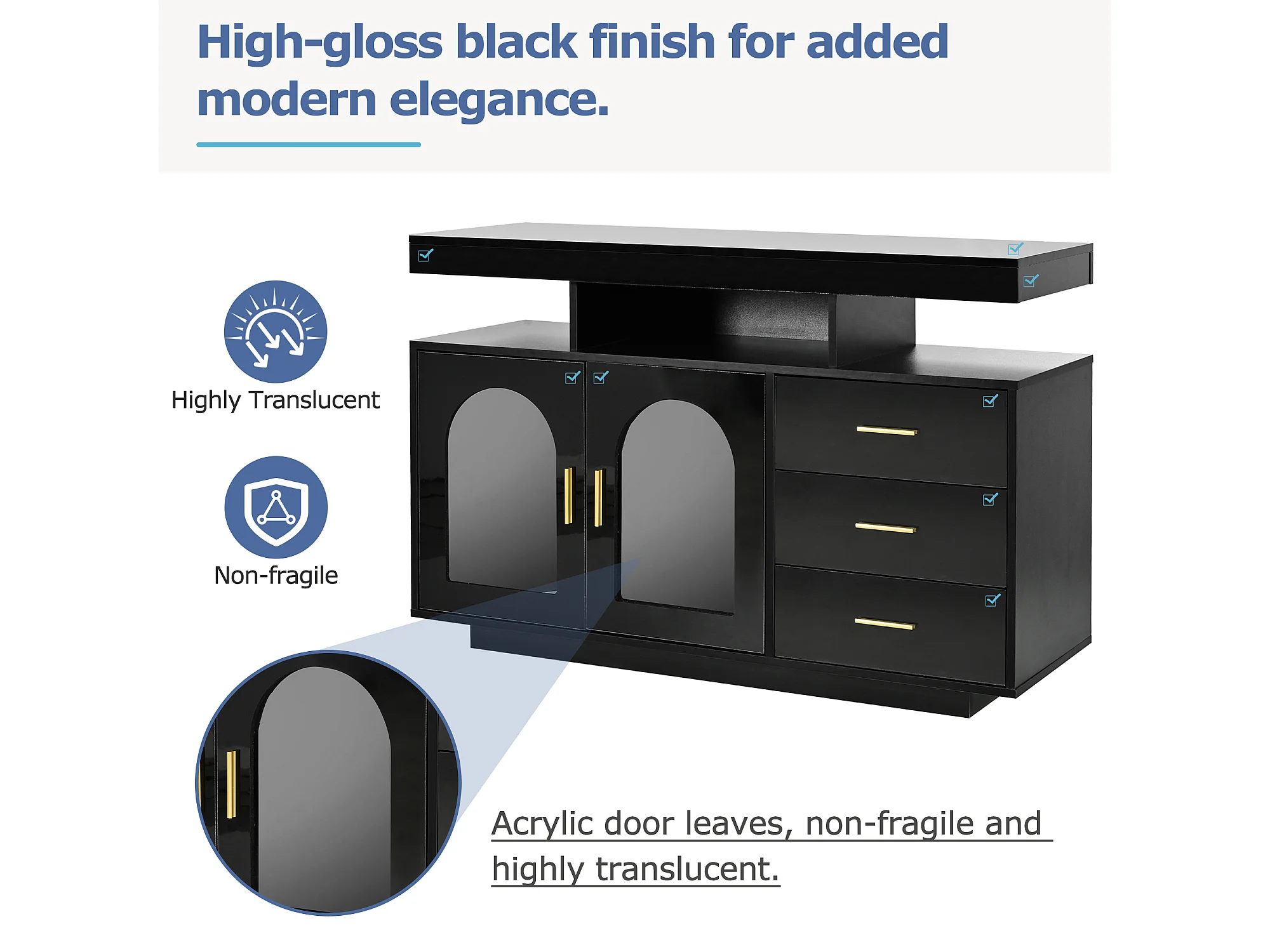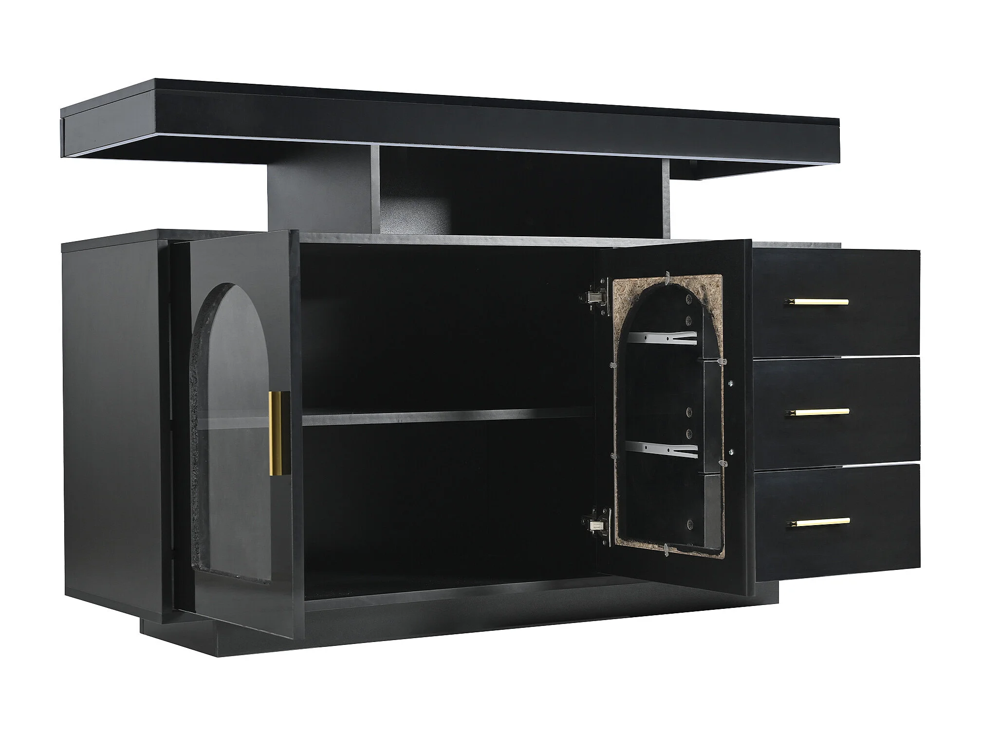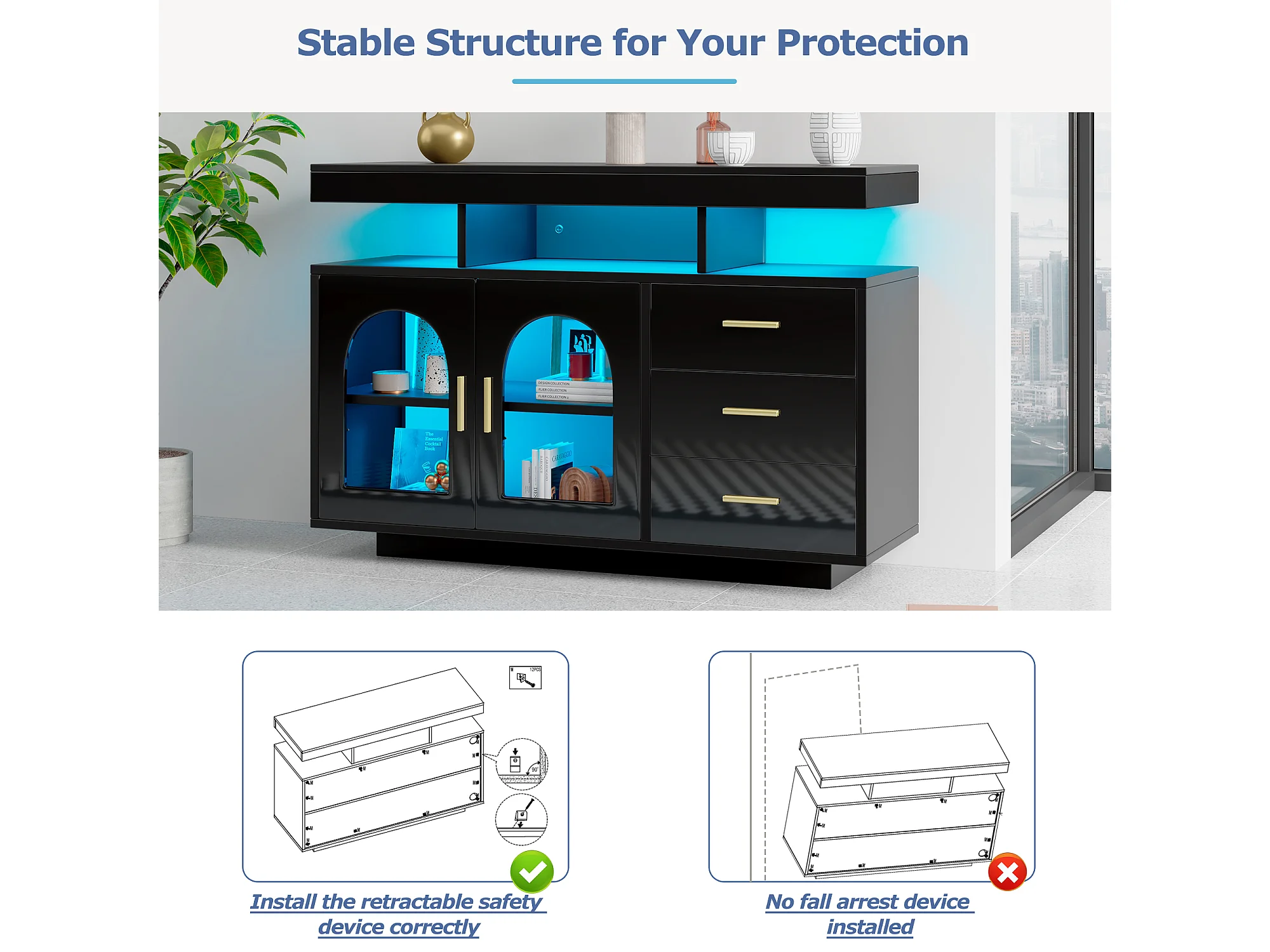 Aparador、armário de cozinha com LED - 3 gavetas e 2 portas - Preto