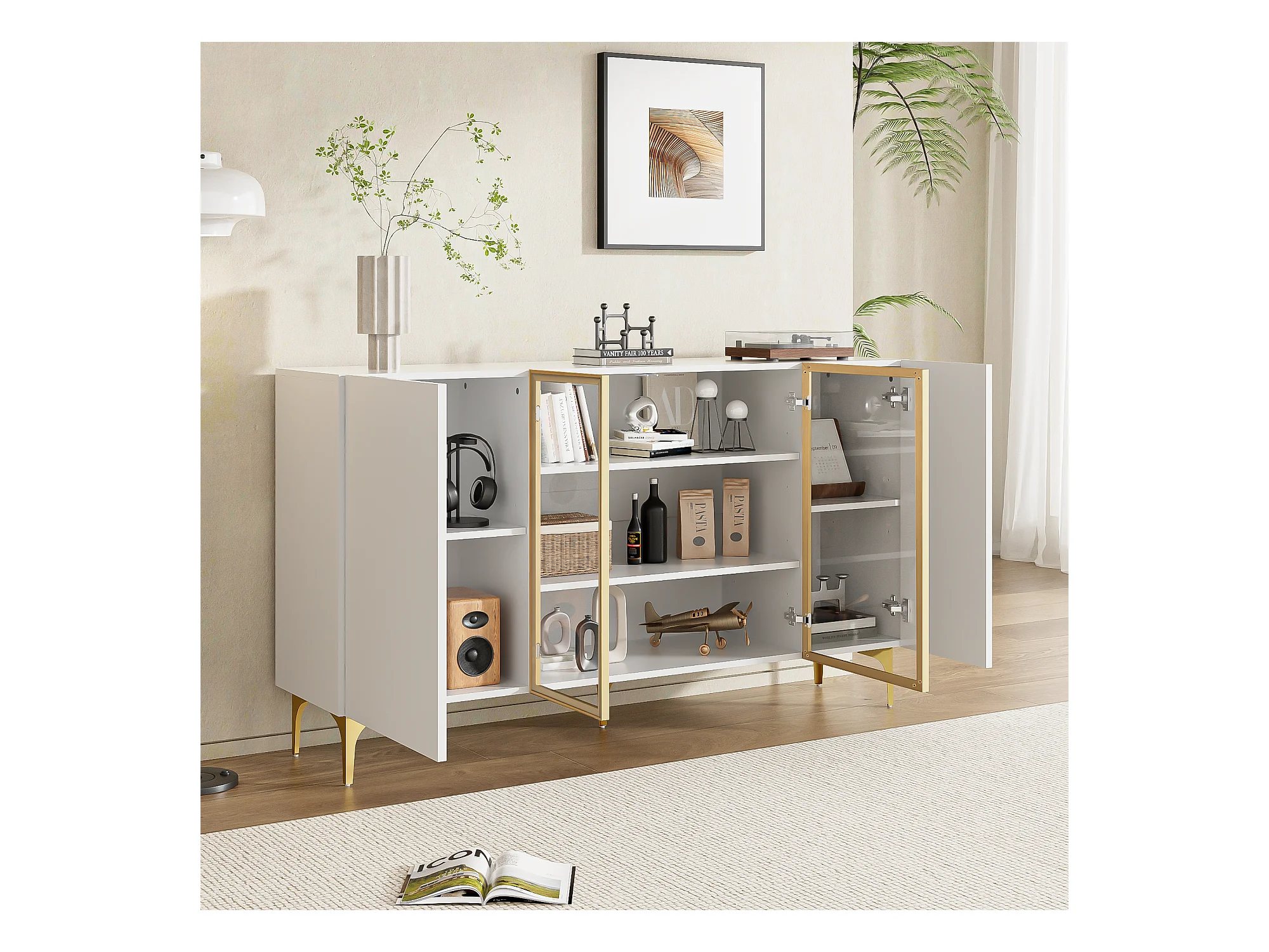 Aparador moderno branco 150 cm MDF 4 portas sala de estar luxo quarto com prateleiras ajustáveis