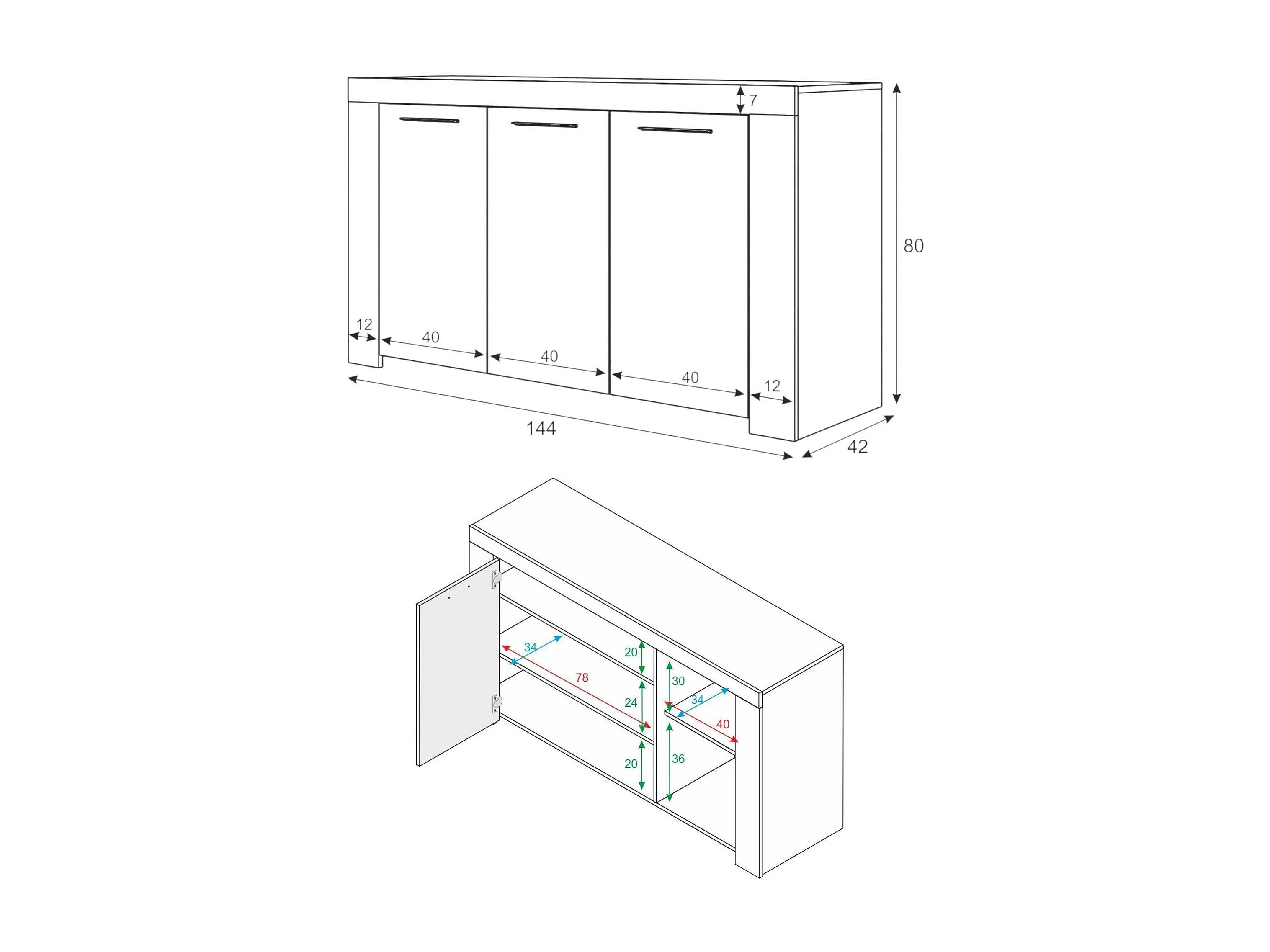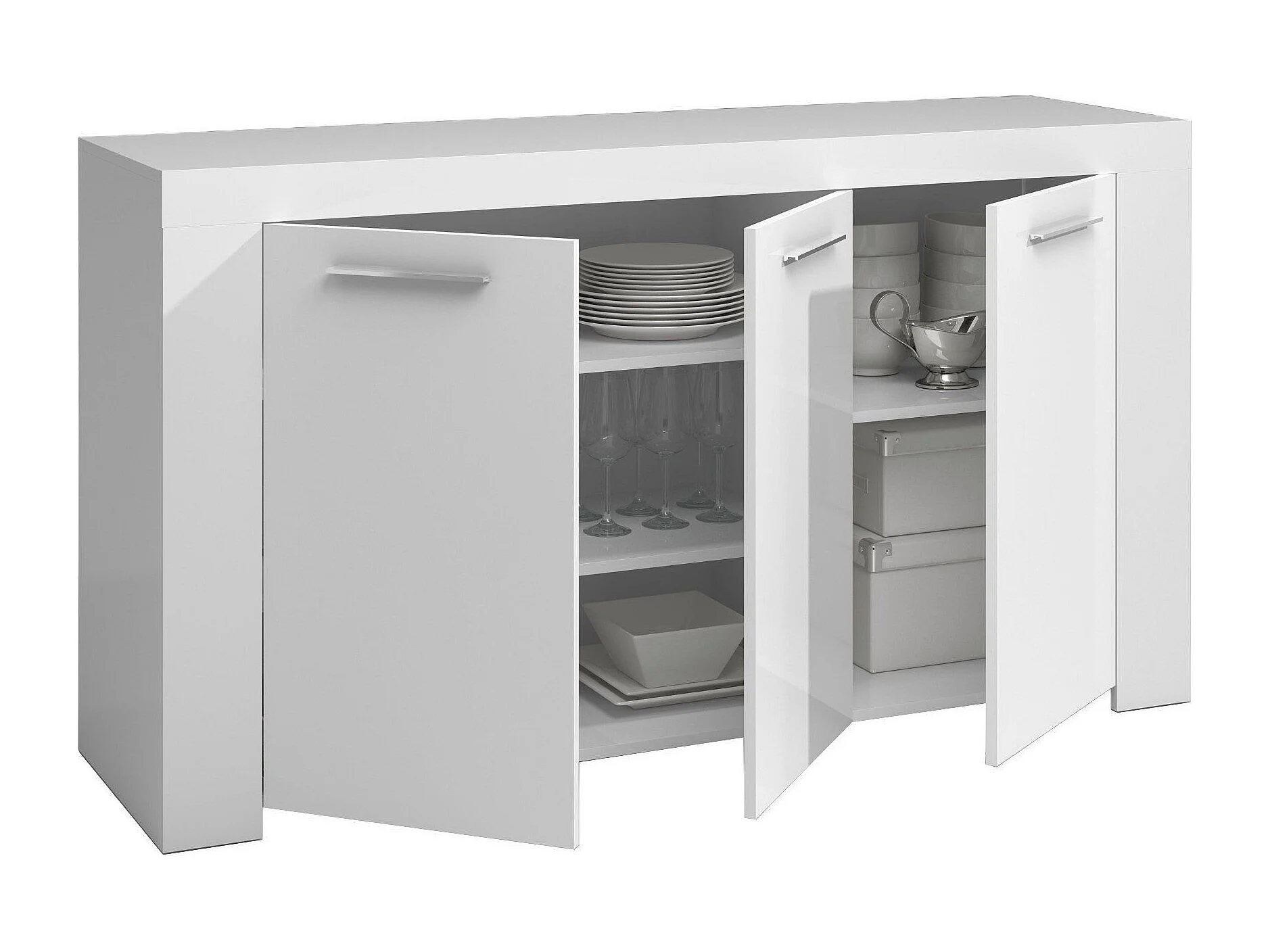 Aparador Bellevue, Aparador moderno com 3 portas, Buffet para sala, Móvel para TV, Aparador para sala, 144x42h80 cm, Branco