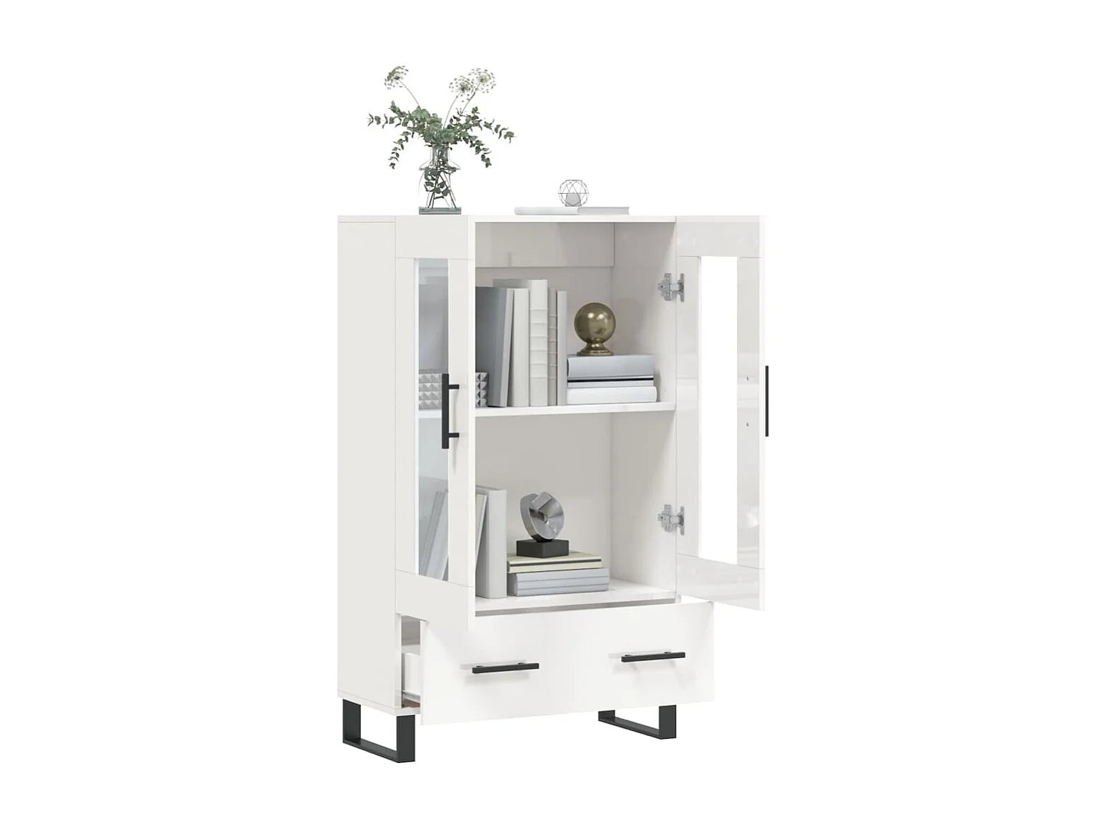 Aparador branco alto brilho 69,5x31x115 cm madeira trabalhada