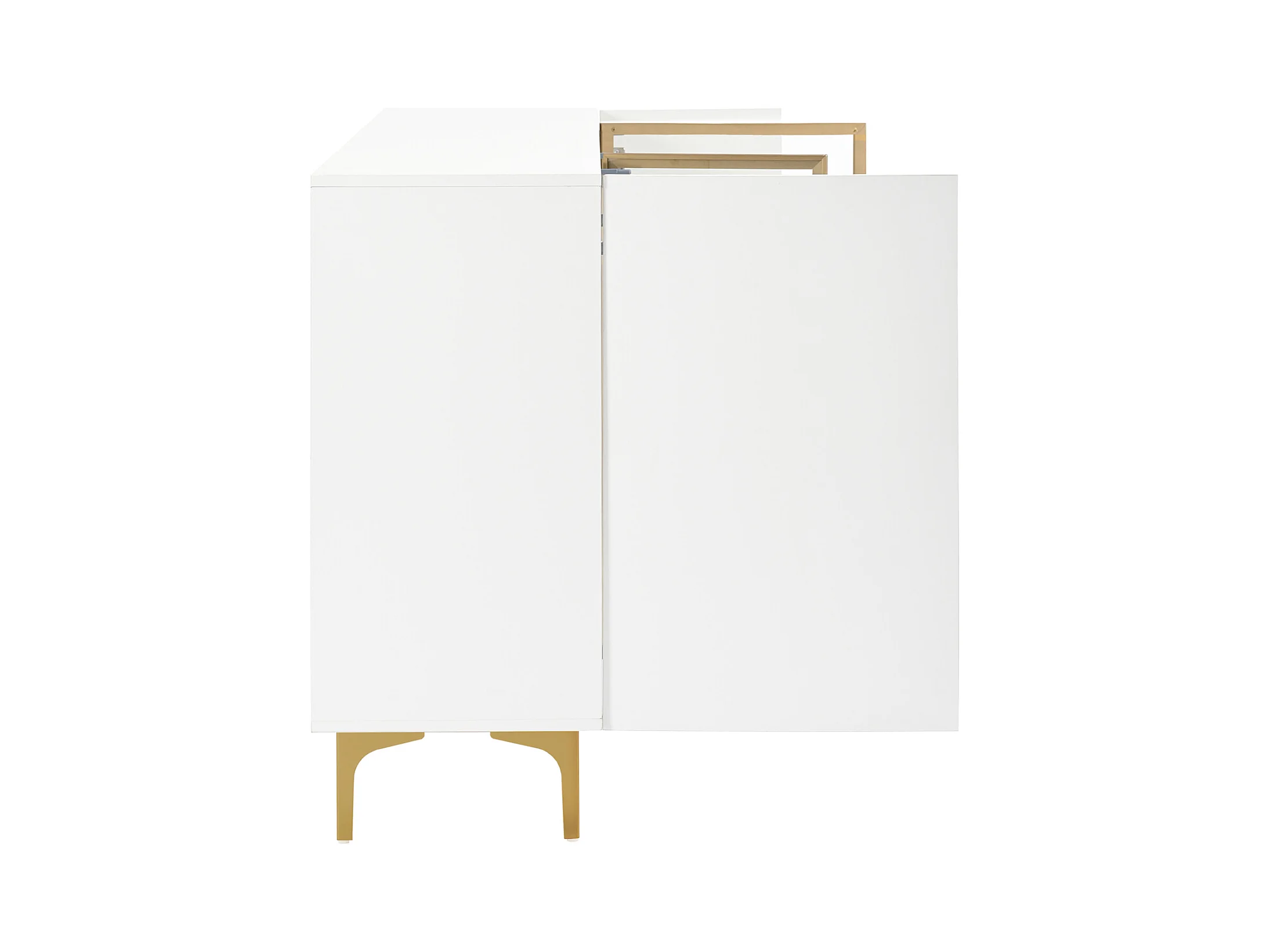 Aparador branco glamoroso com pés dourados, 107 x 85 x 39