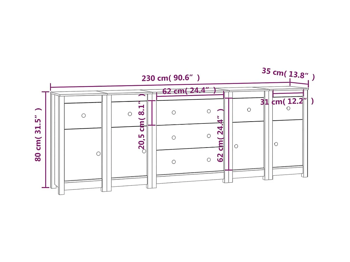 Aparador buffet cômoda armário organizador cozinha sala sala 230 x 35 x 80 cm madeira maciça de pinho marrom 02_0029567