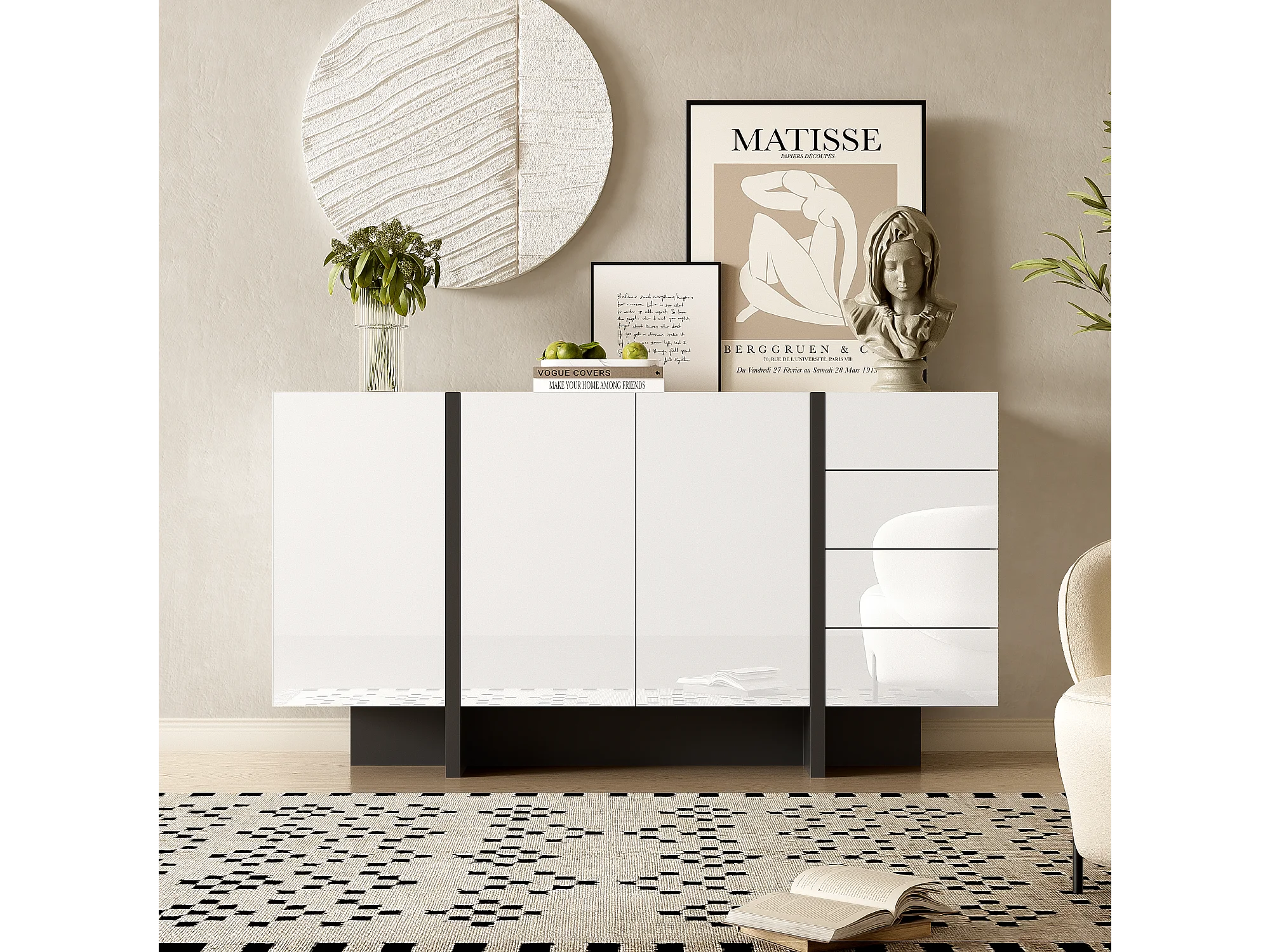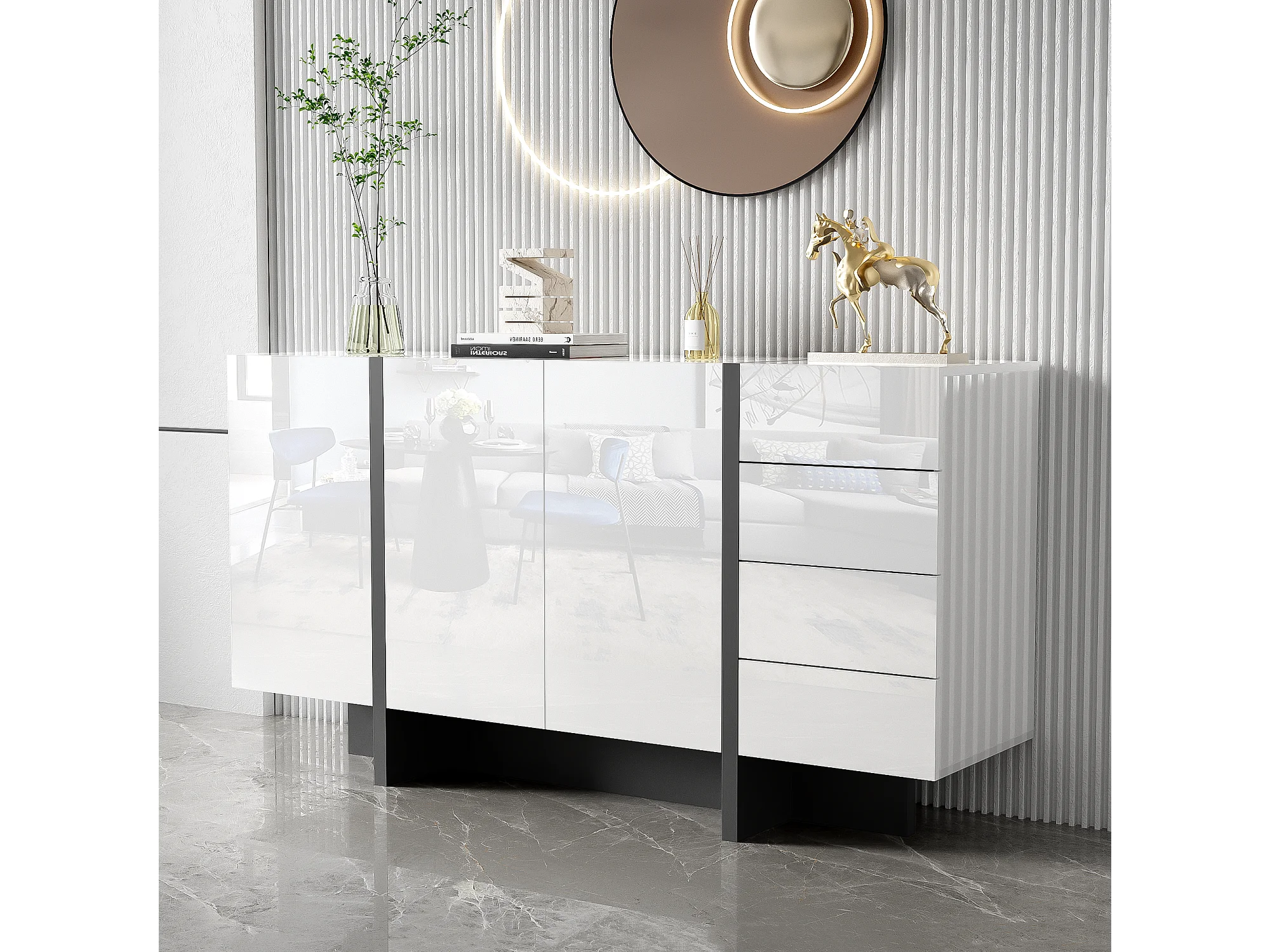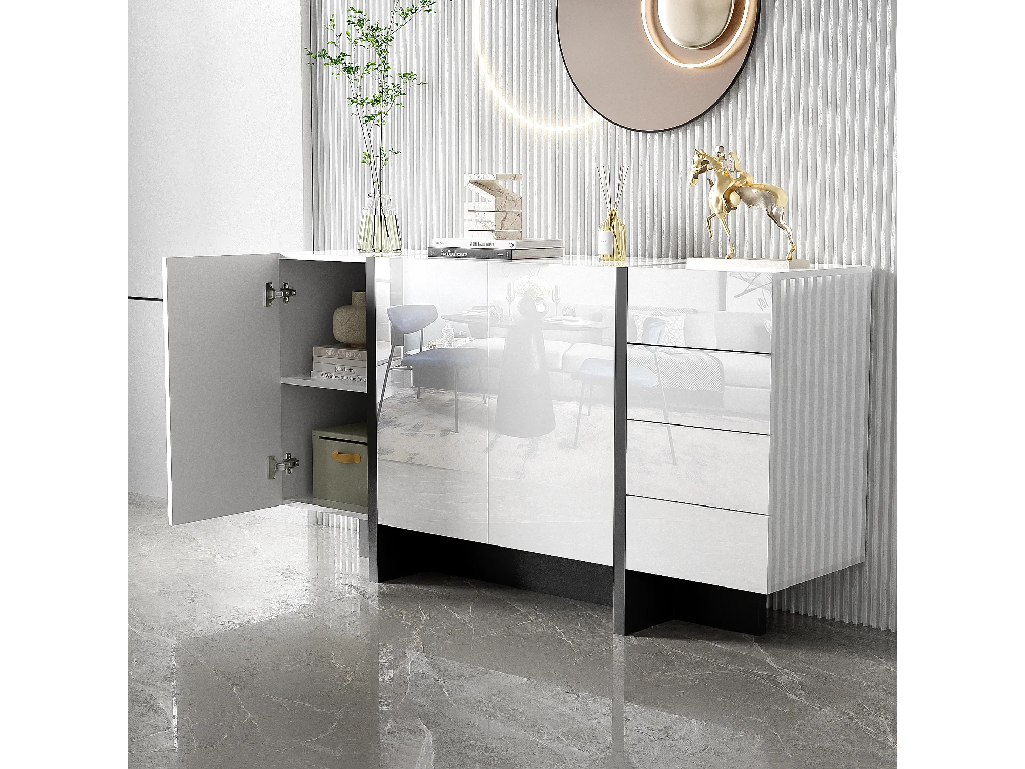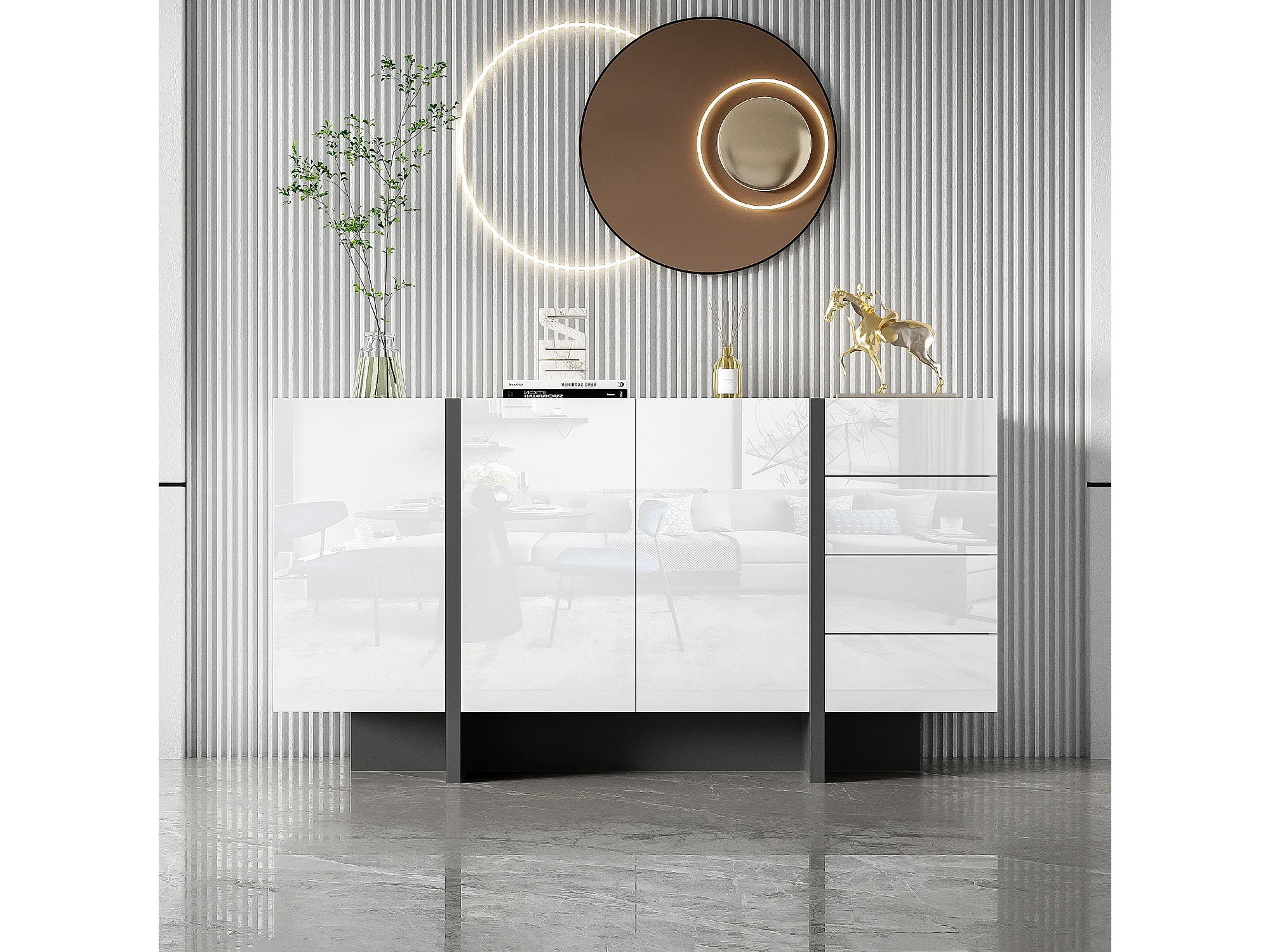 Aparador com 2 portas e 3 gavetas - 150 x 40 x 80,5 cm - MDF e aglomerado - Branco brilhante
