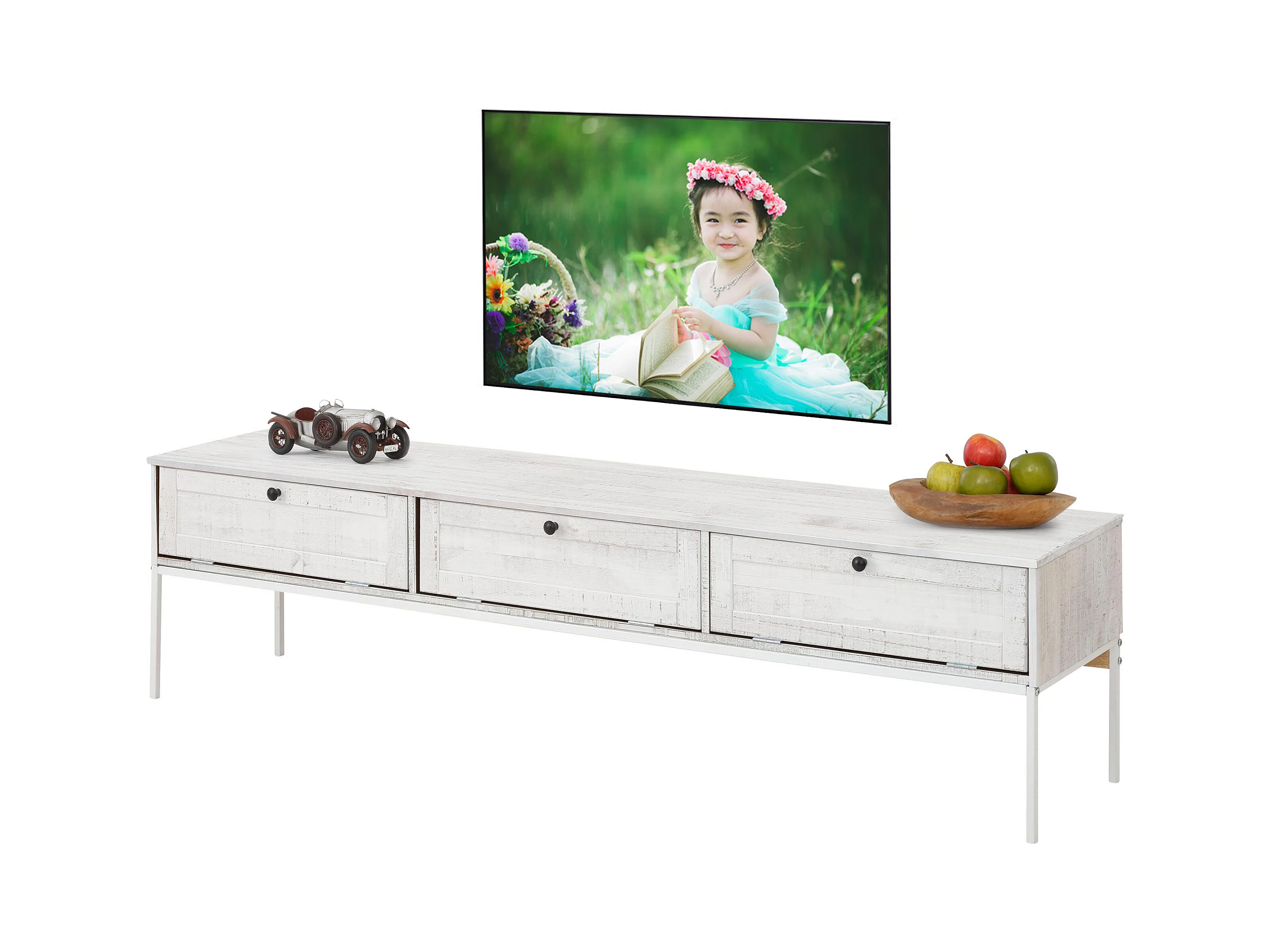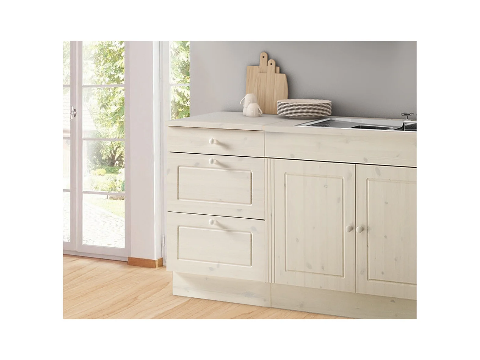 Aparador com 3 portas e 2 gavetas em pinho branco