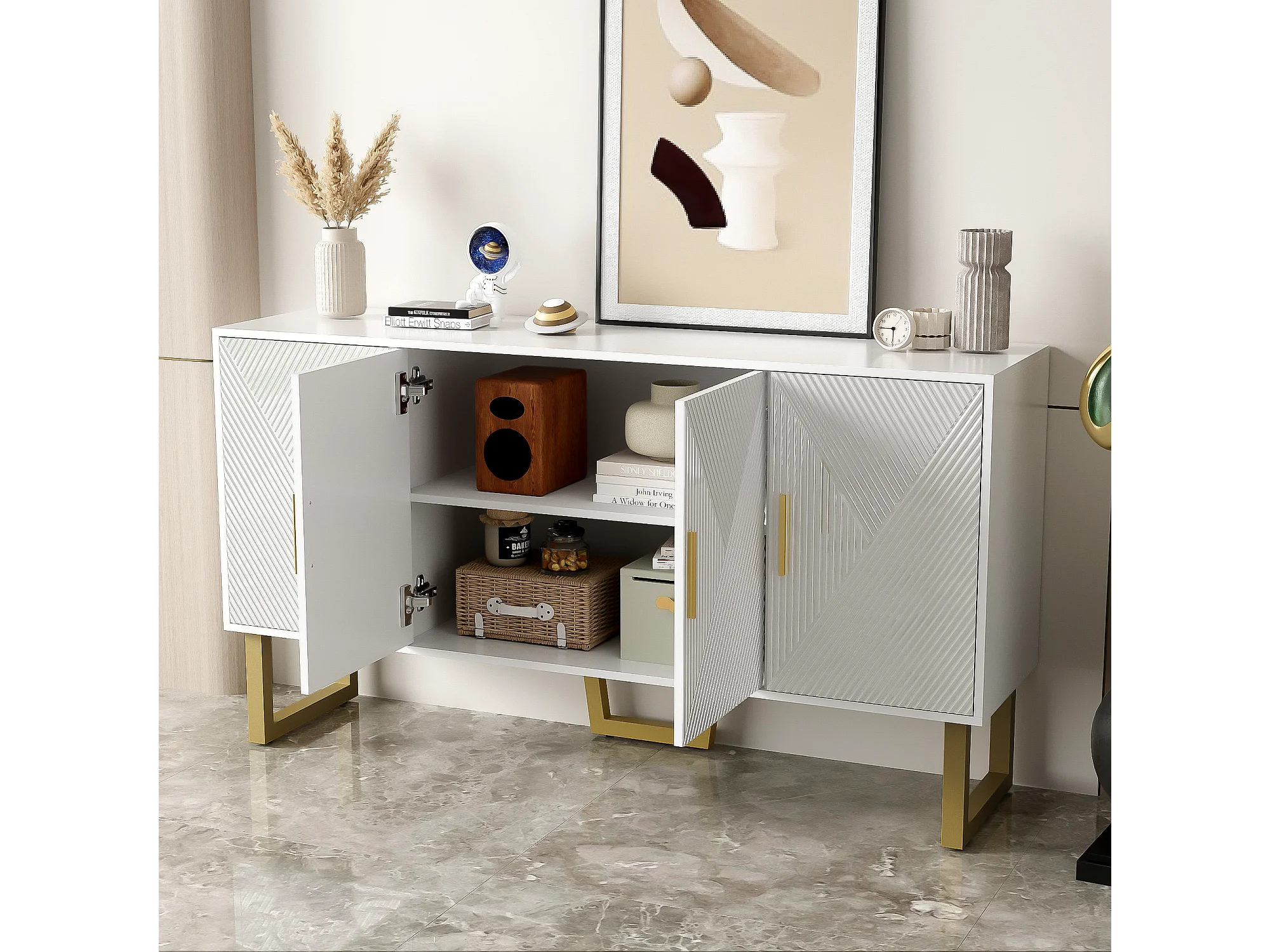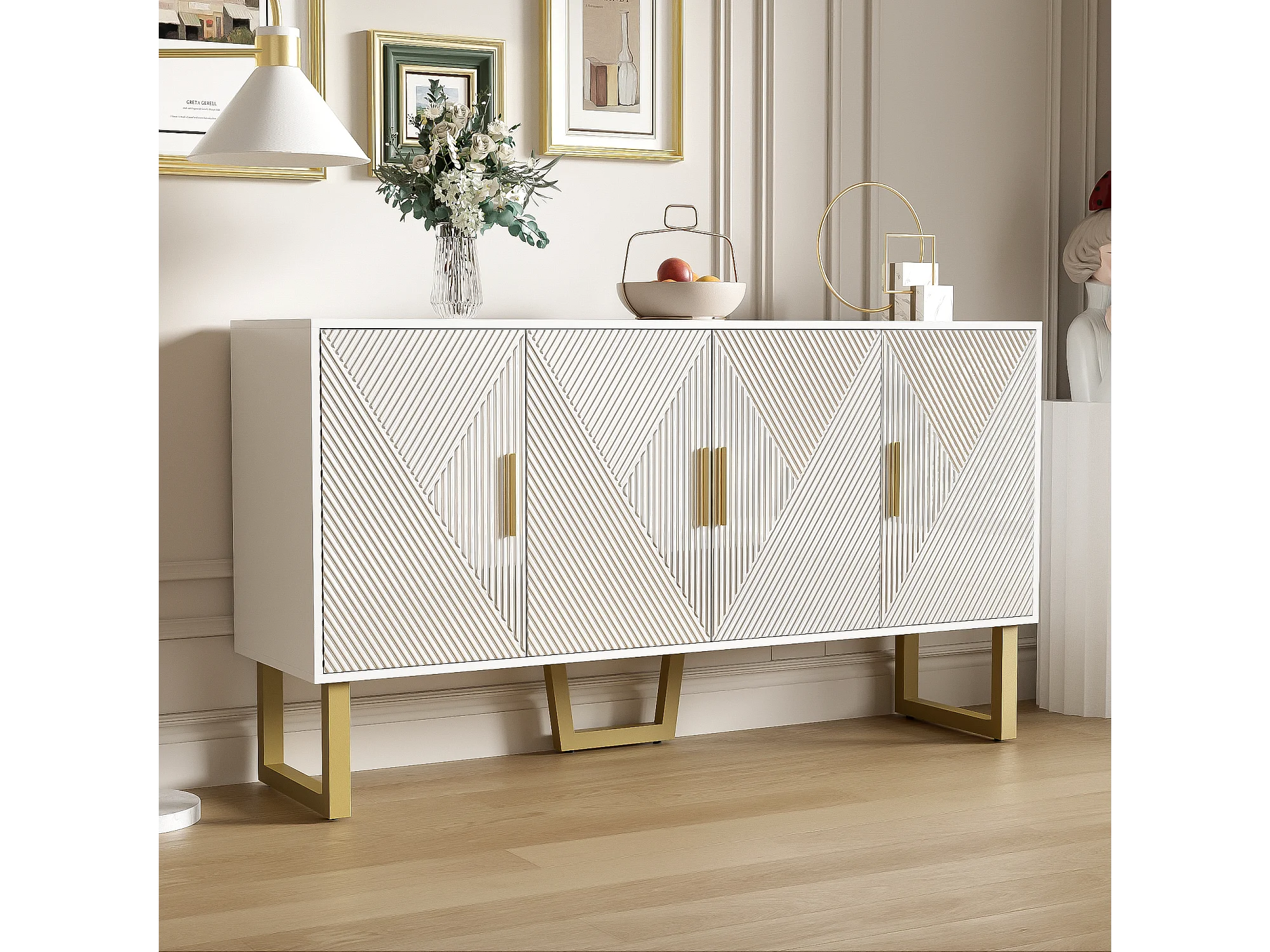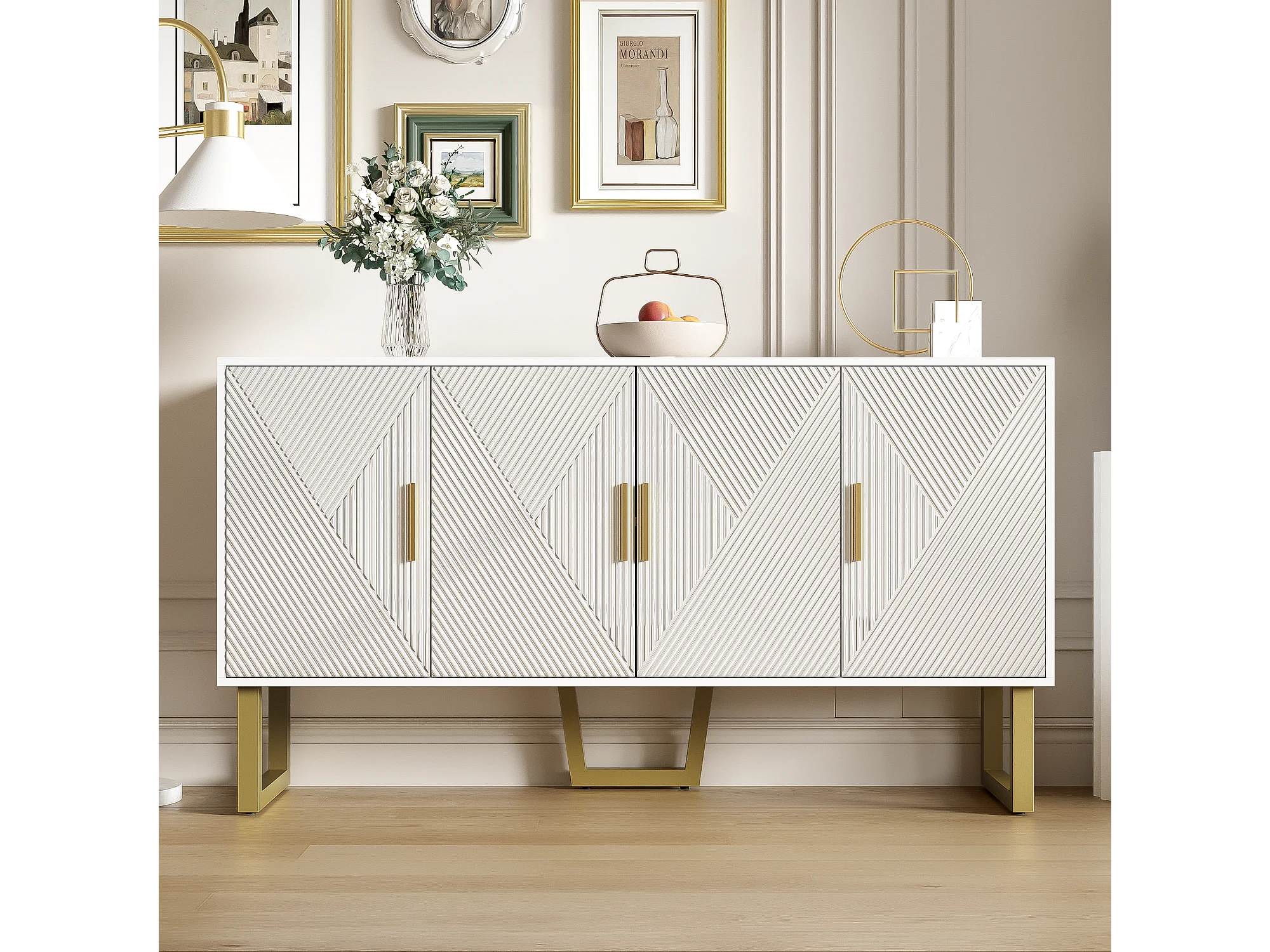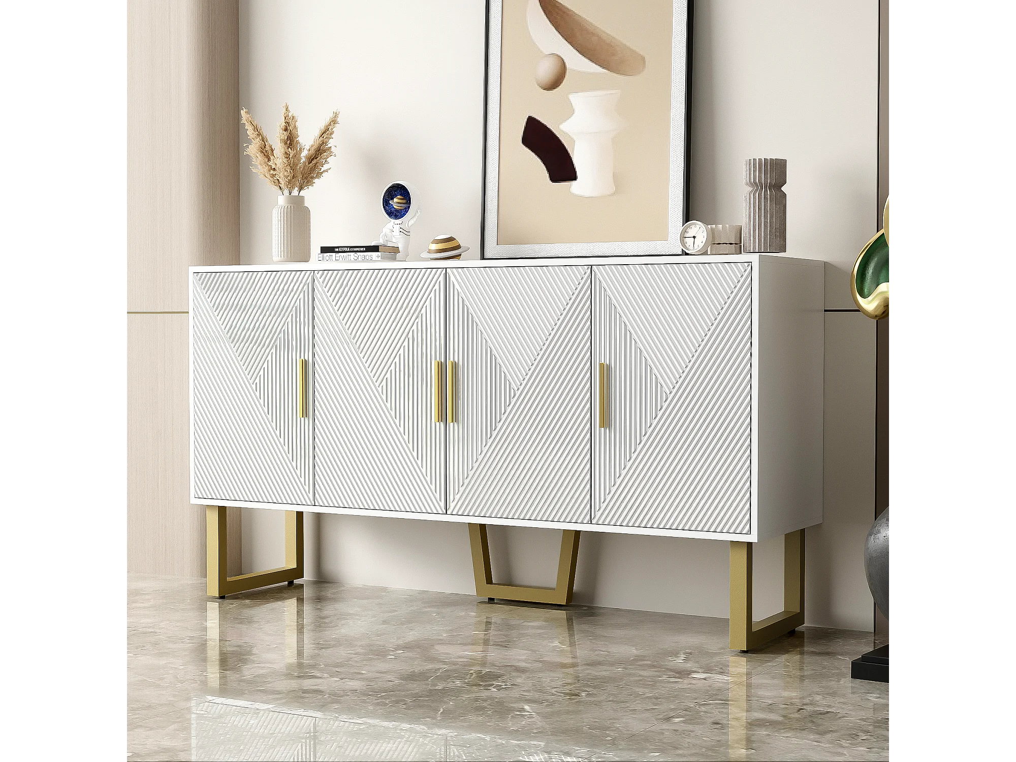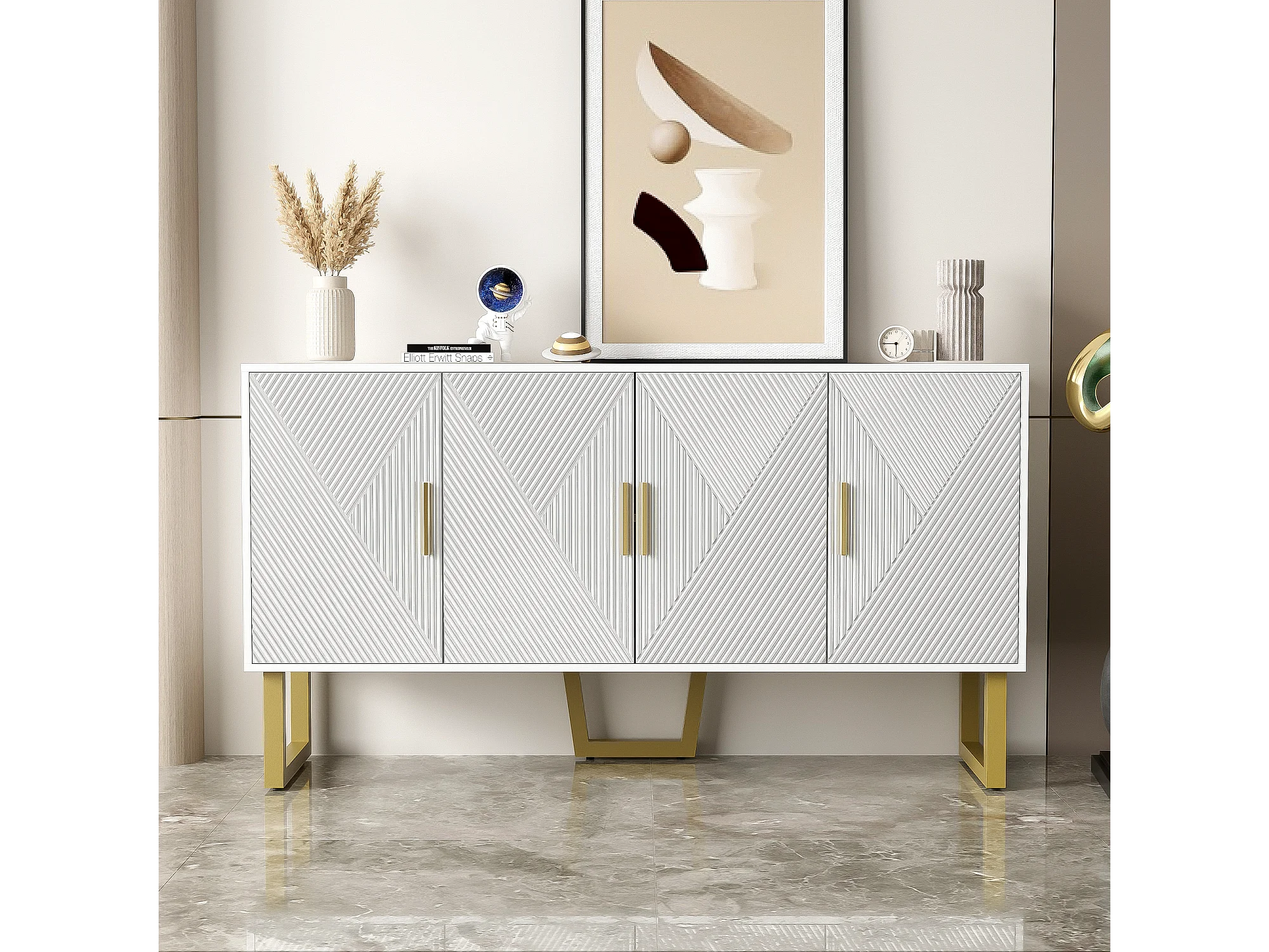 Aparador com 4 portas - 150 x 40 x 82 cm - MDF, aglomerado e metal - Branco e dourado