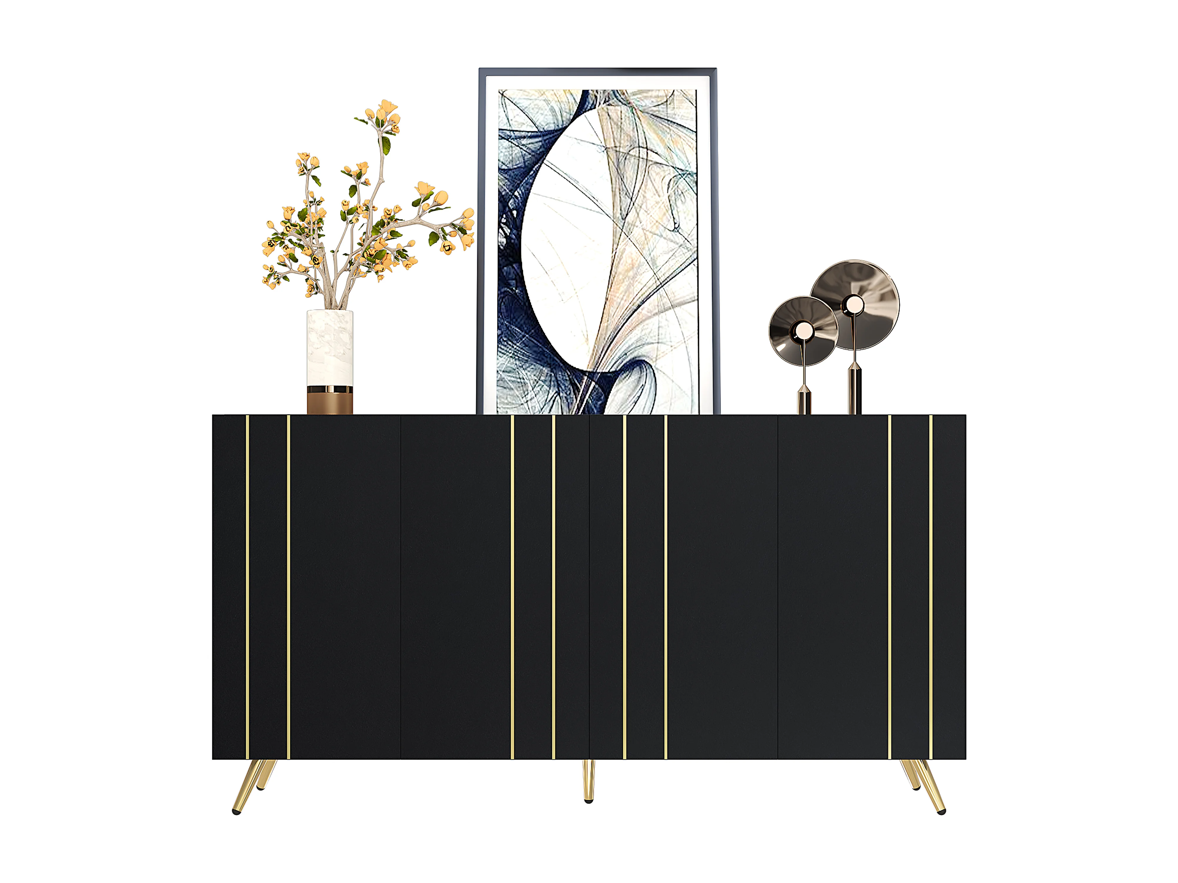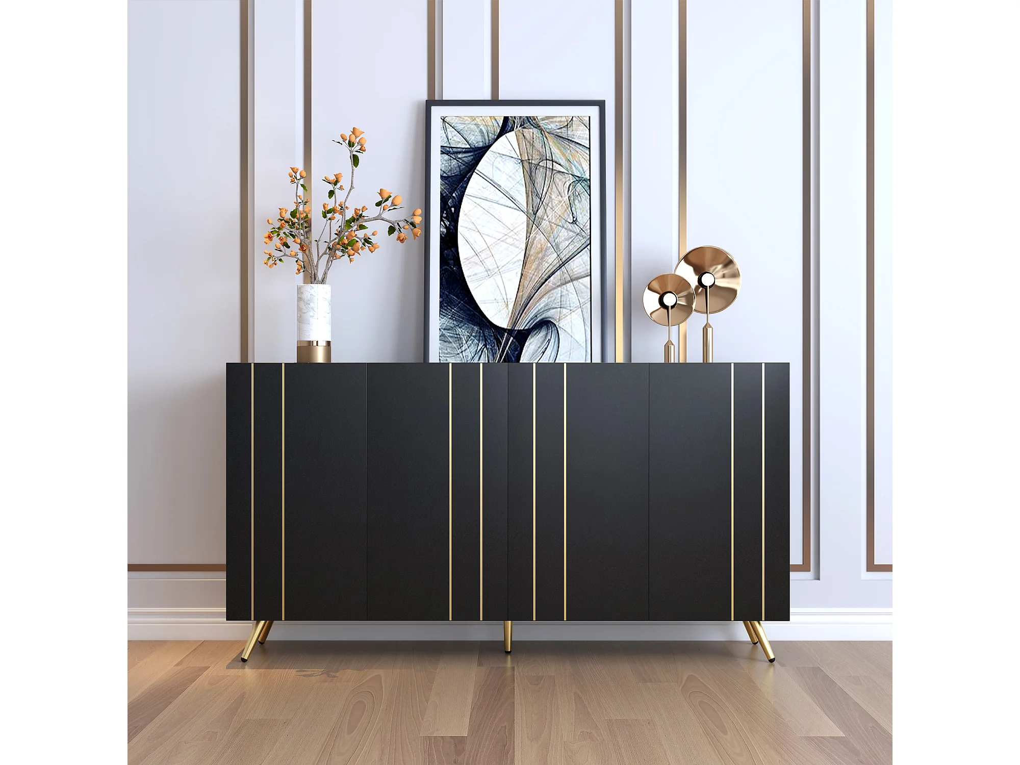 Aparador com 4 portas - 160 x 38 x 80 cm - Aglomerado e metal dourado - Preto