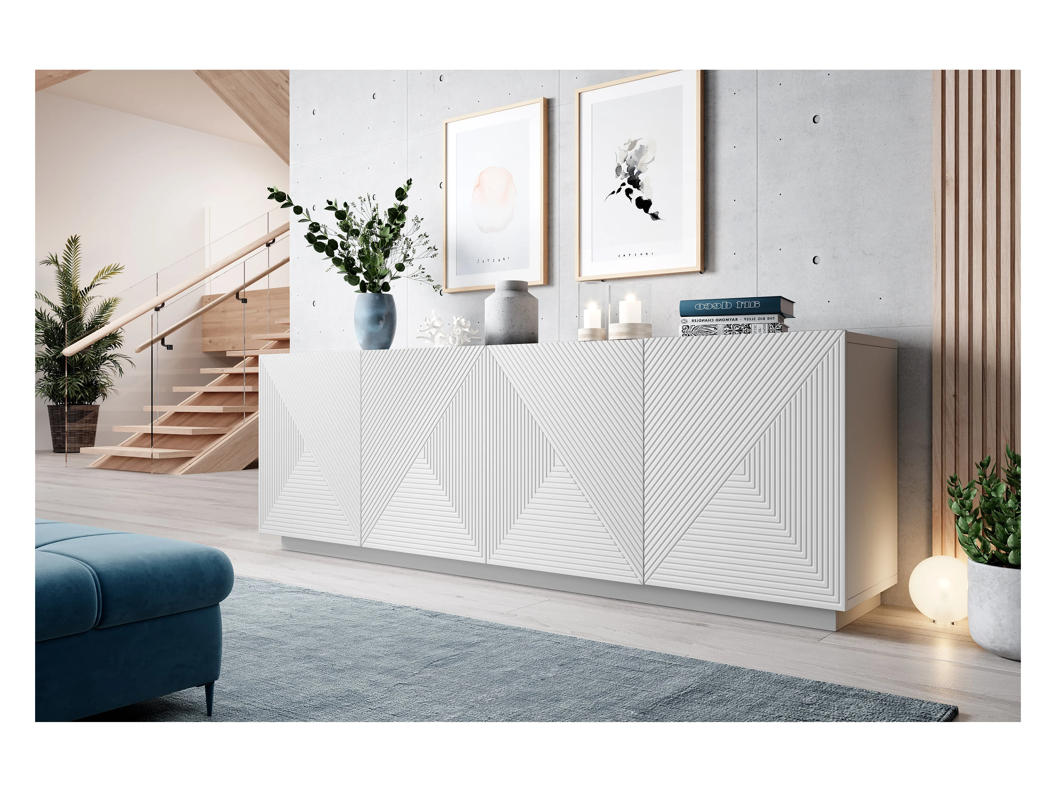 Aparador com 4 portas em madeira laminada branca 200x43 cm