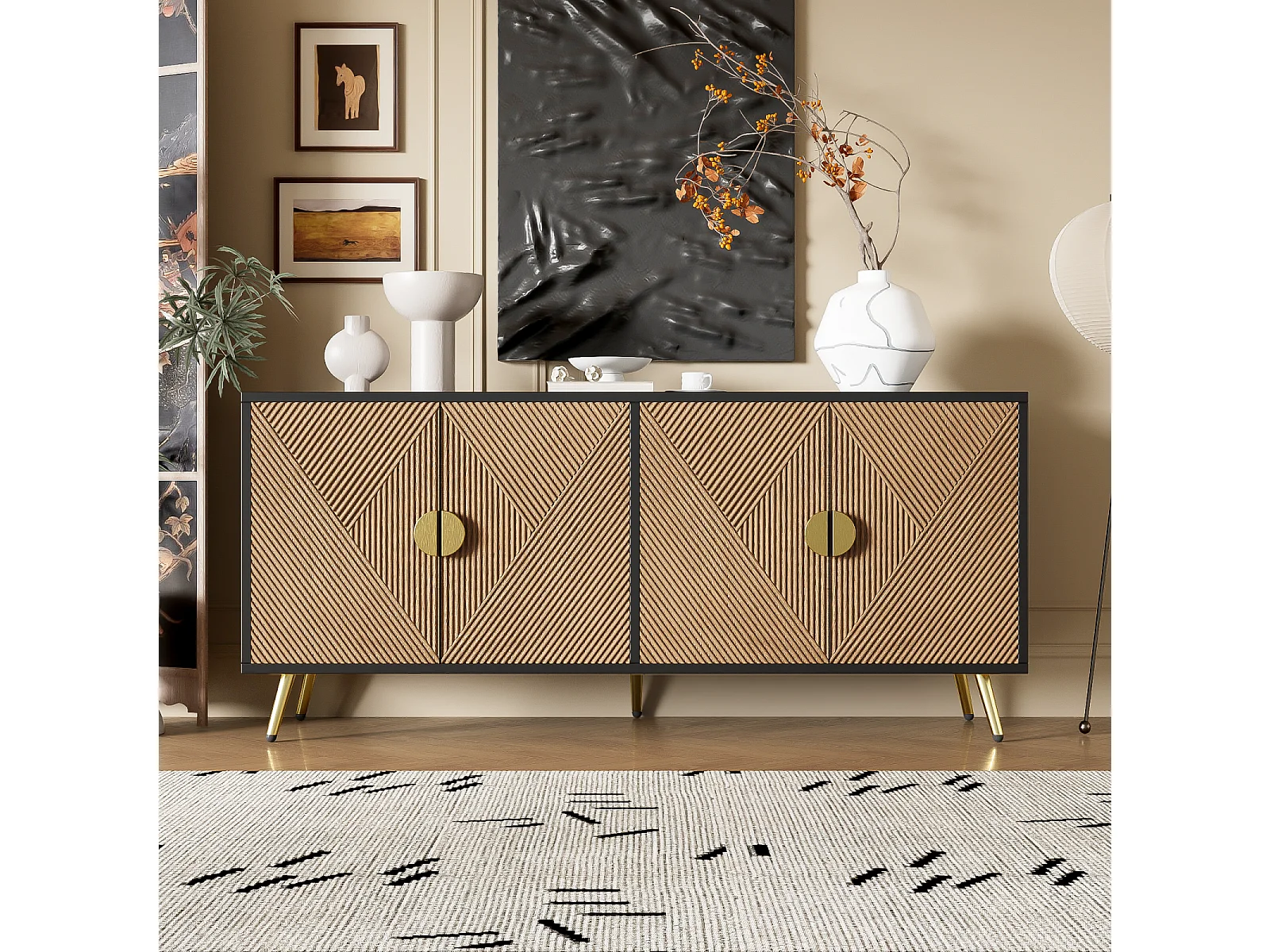 Aparador, com 4 portas, puxadores dourados escovados e pés brilhantes, preto