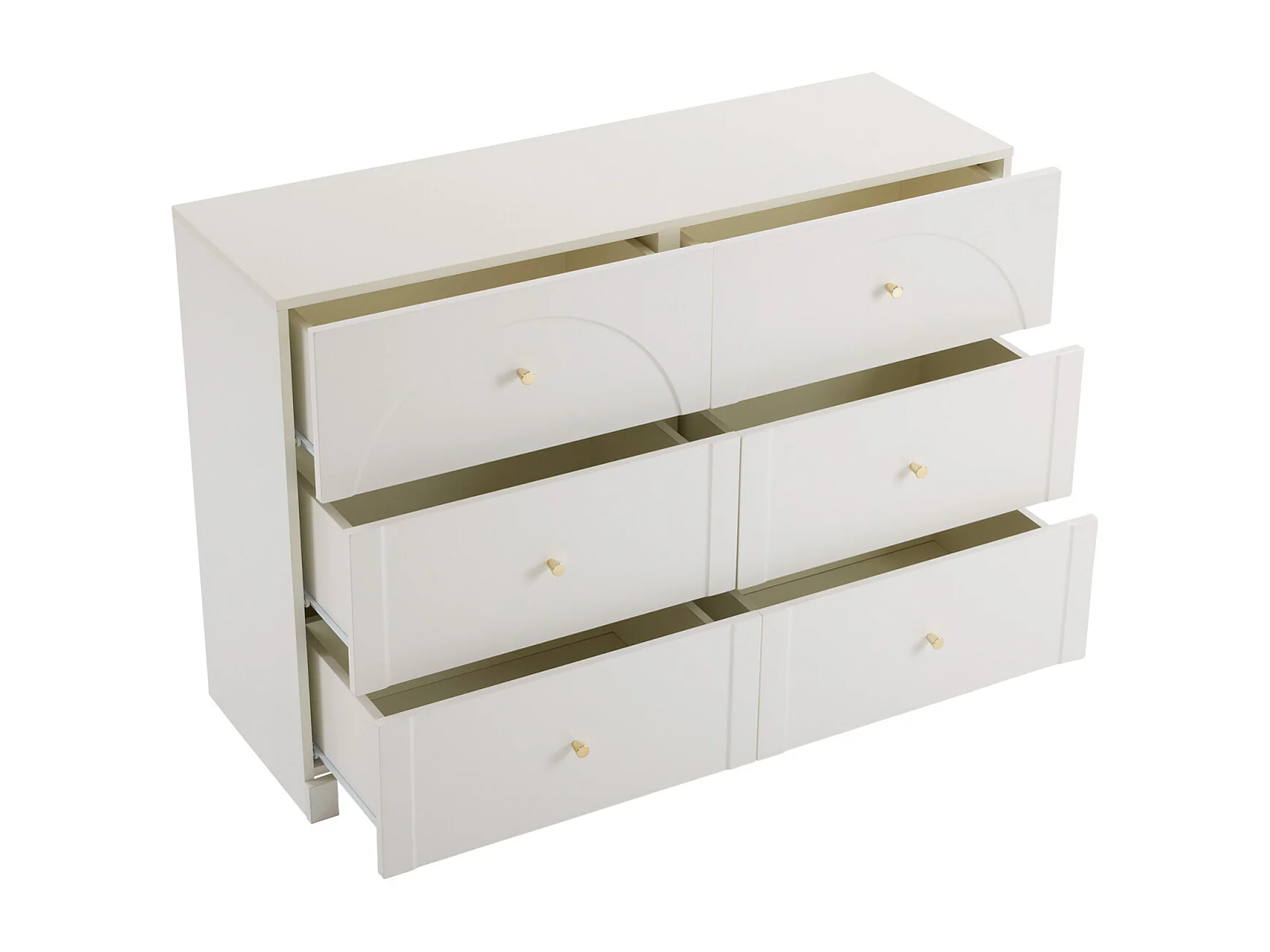 Aparador com 6 gavetas, branco, armário de arrumação com puxador dourado, para quarto ou sala de estar, 120x40x82 cm