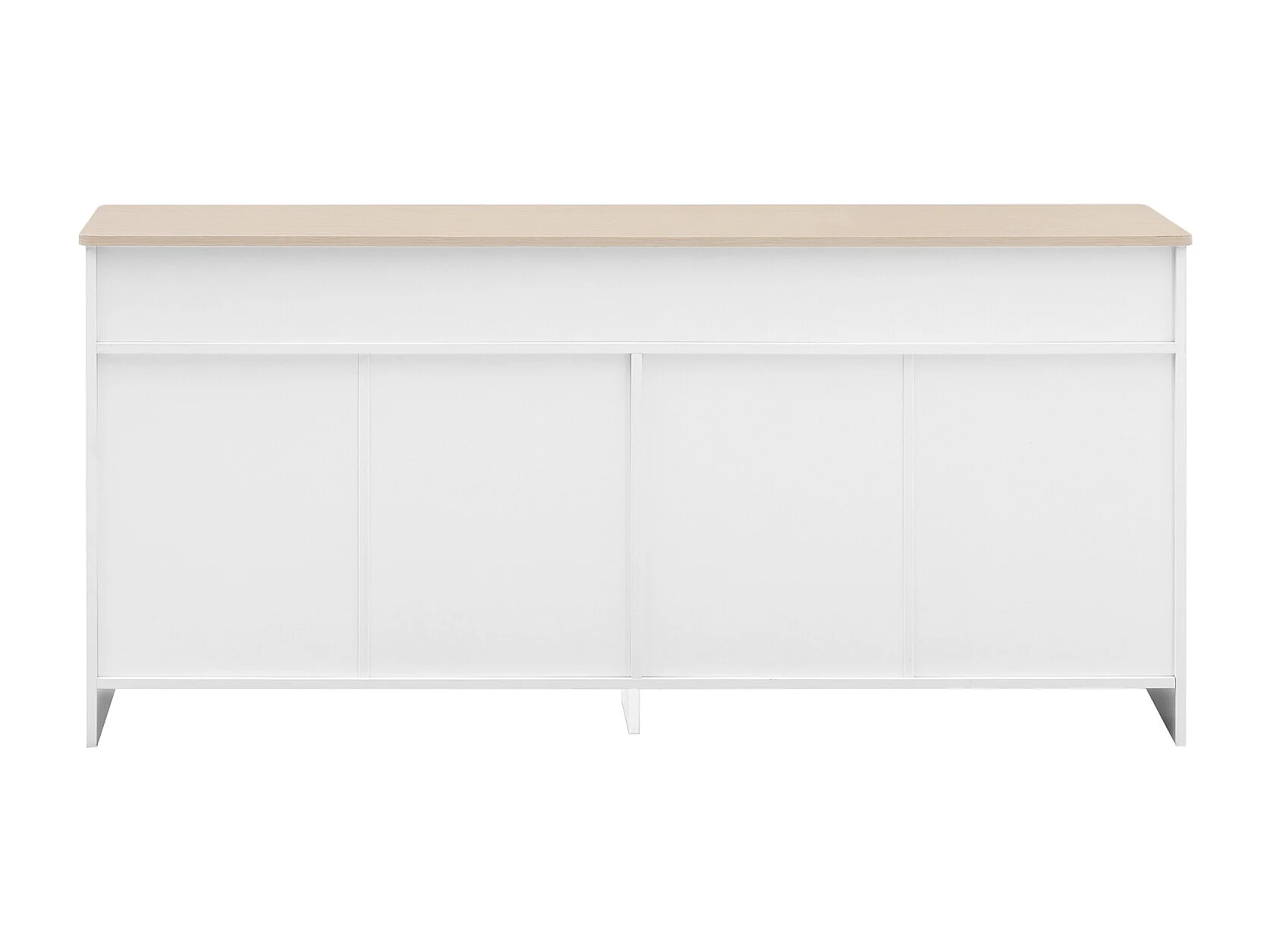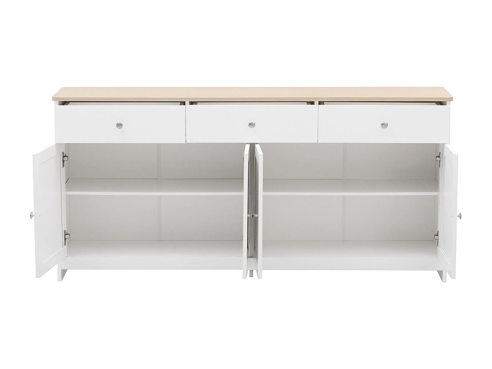 Aparador com acabamento em madeira branca, 4 portas, 3 gavetas, 160 x 37 x 75 cm, para sala de estar e sala de jantar.